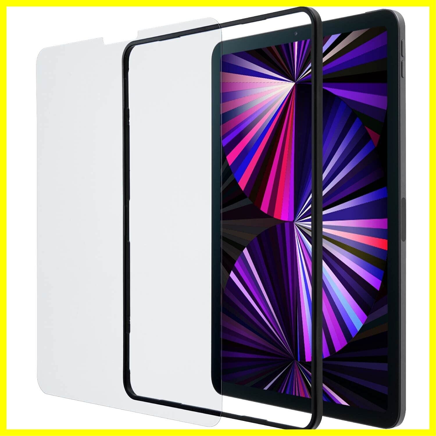 ガラス特有のなめらかな指滑りを実現するiPad Pro 11インチ (第4世代)(2022年モデル)、iPad Air (第5世代)(2022年モデル)、iPad Pro 11インチ (第3世代)(2021年モデル)、iPad Air (第4世代)(2020年モデル)、iPad Pro 11インチ (第2世代)(2020年モデル)、iPad Pro 11インチ (2018年モデル)用ガイドフレーム付の液晶保護ガラスです。