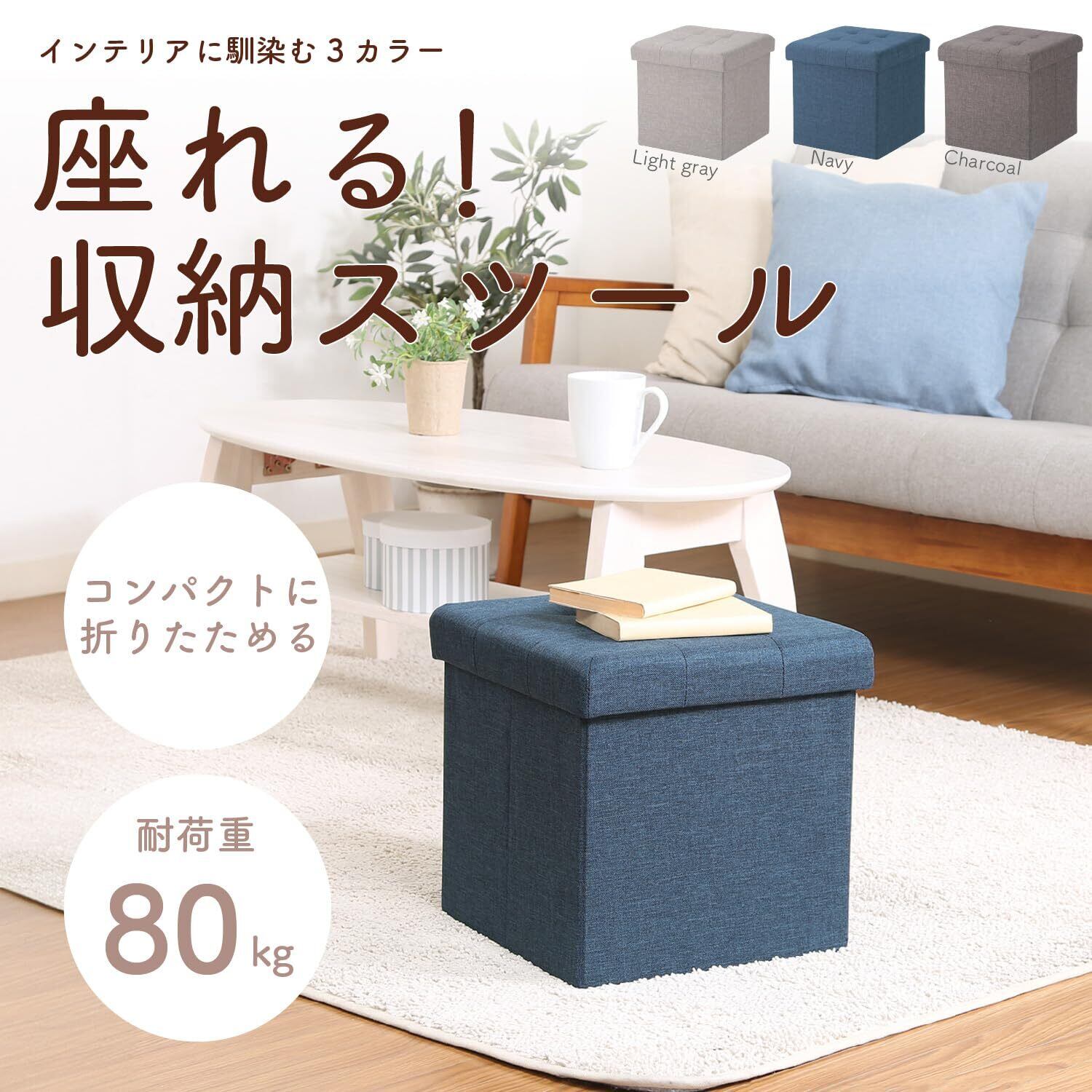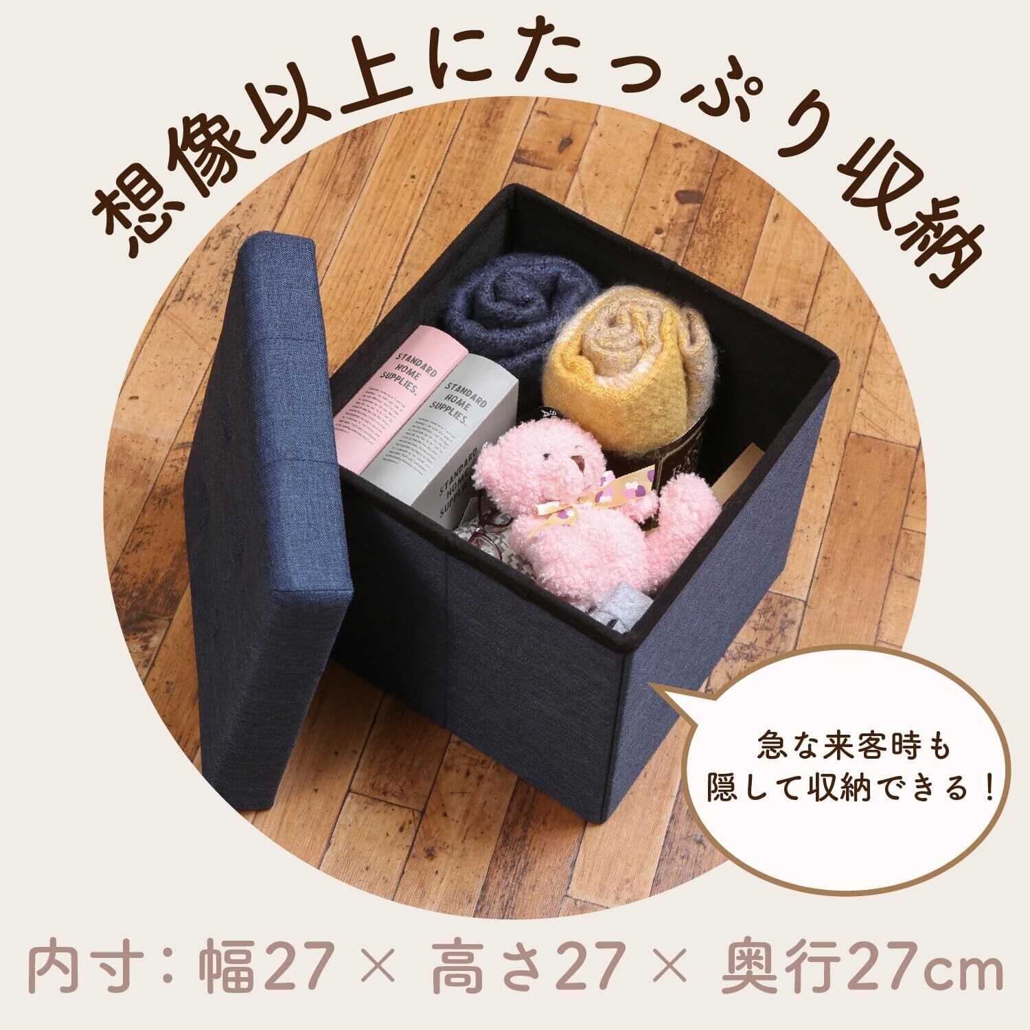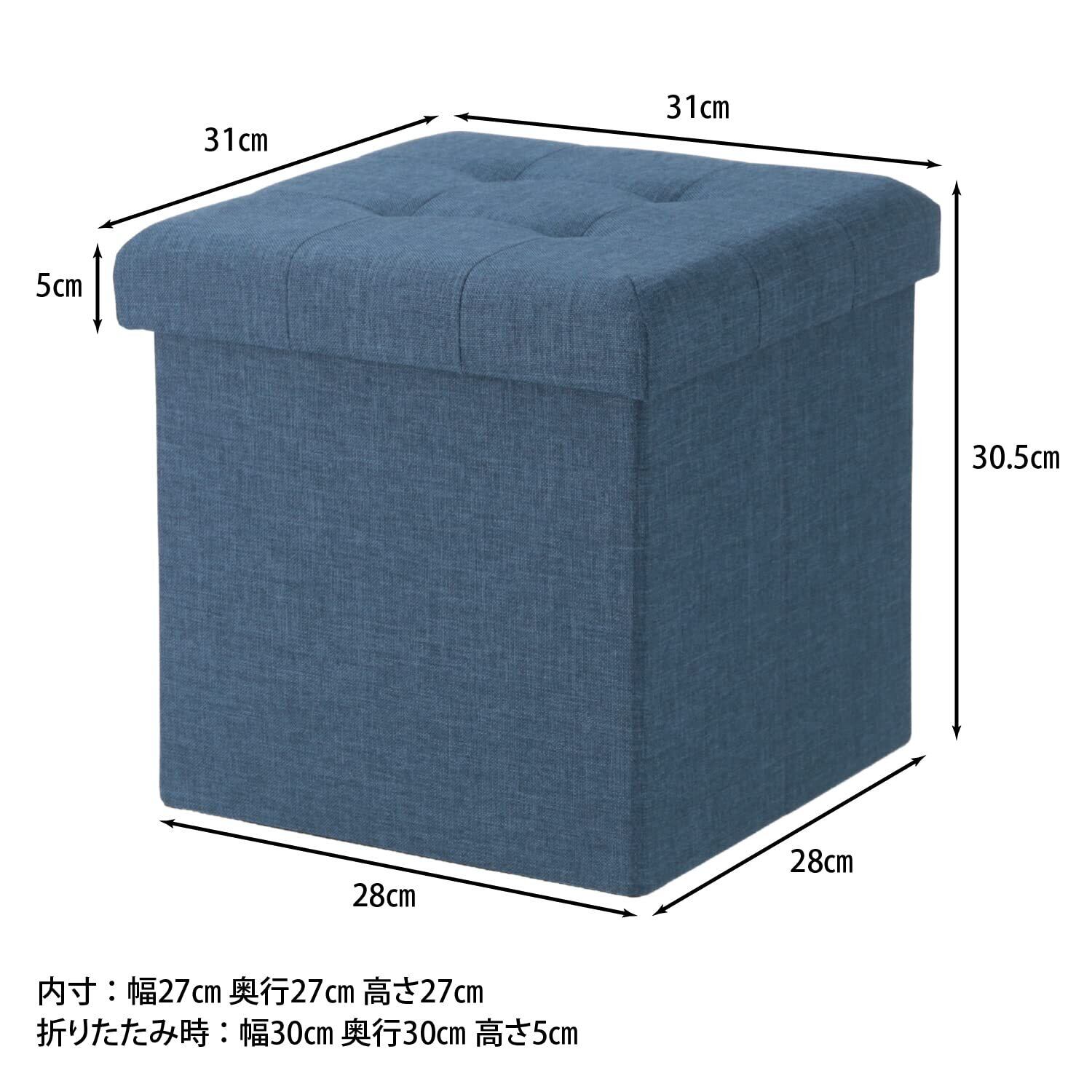 不二貿易 収納スツール 収納ボックス 幅31×奥行31×高さ30.5cm ネイビー オットマン 耐荷重80kg 折りたたみ ボックススツール ハント 85993