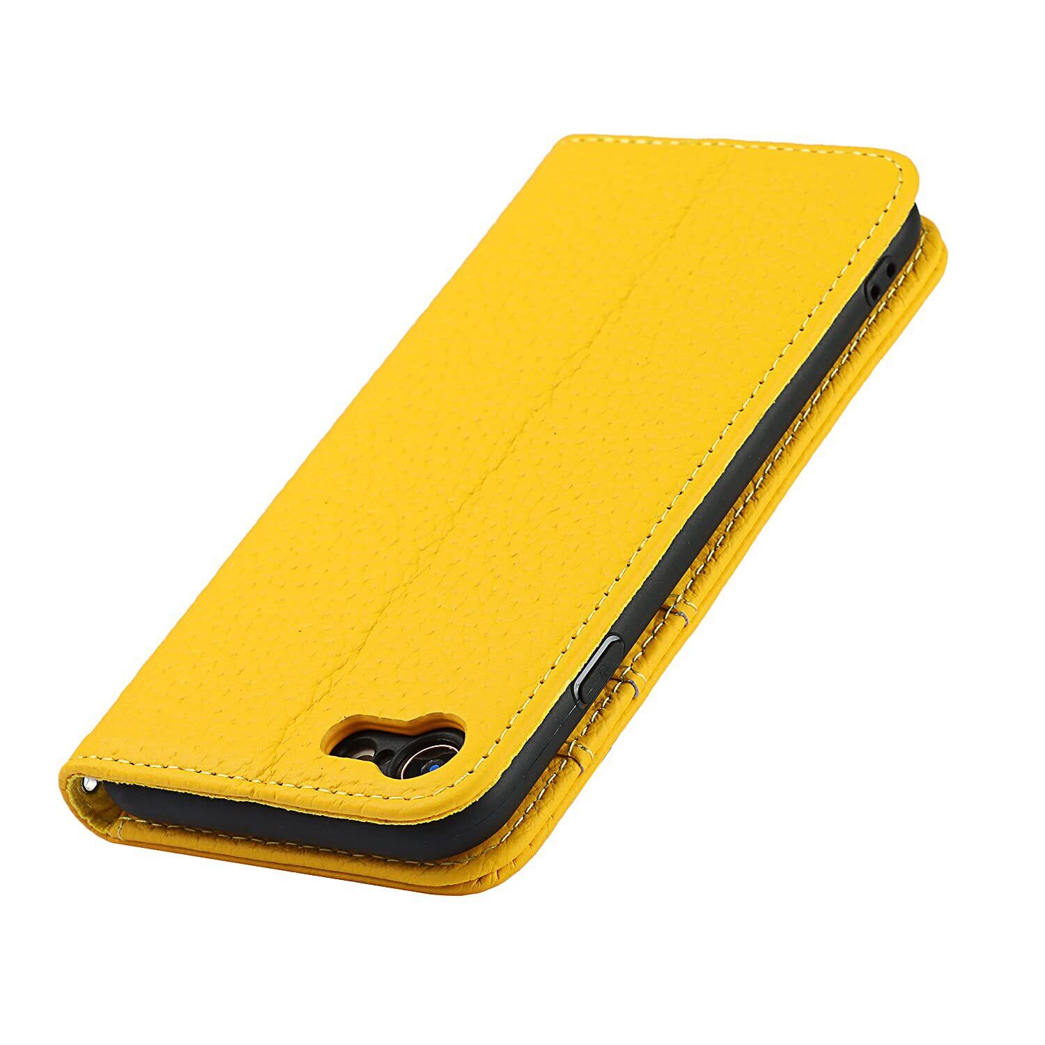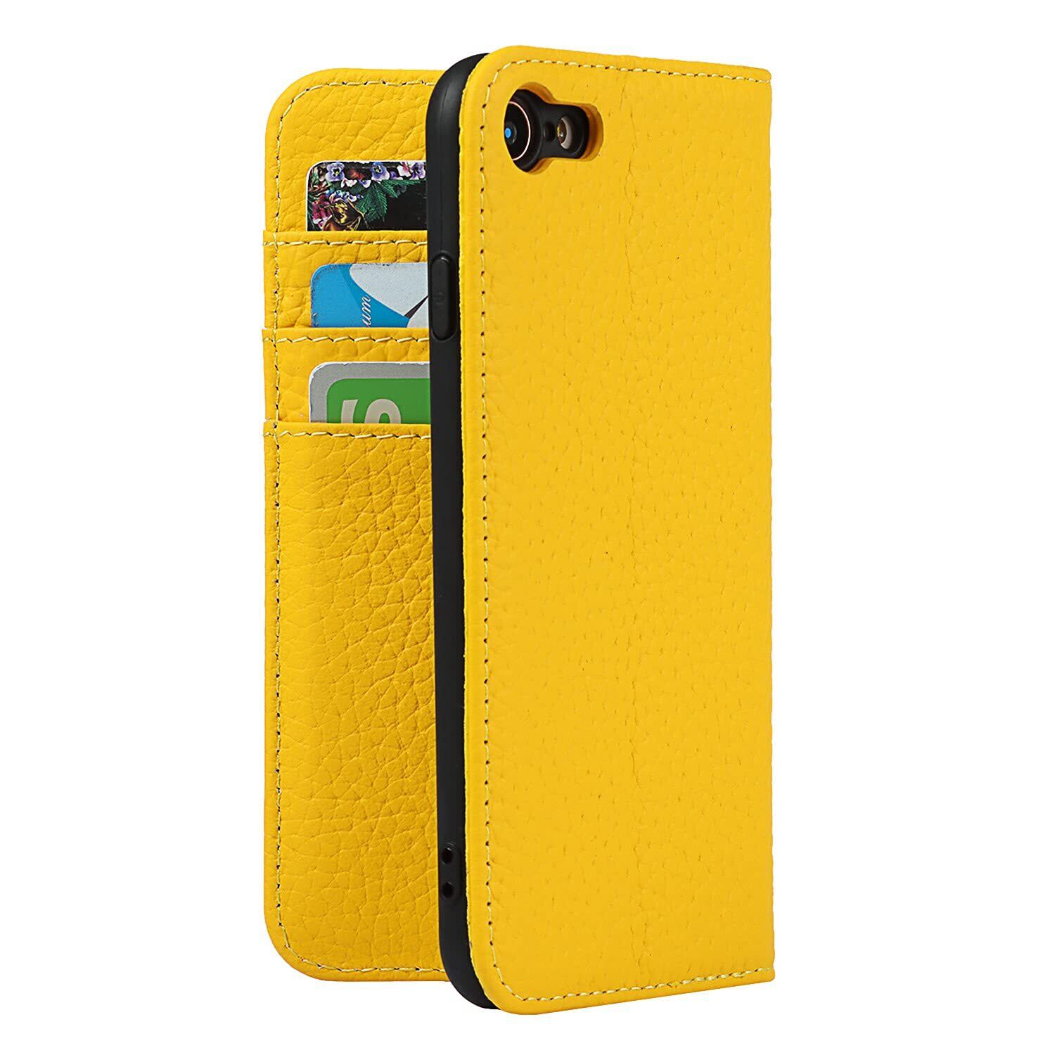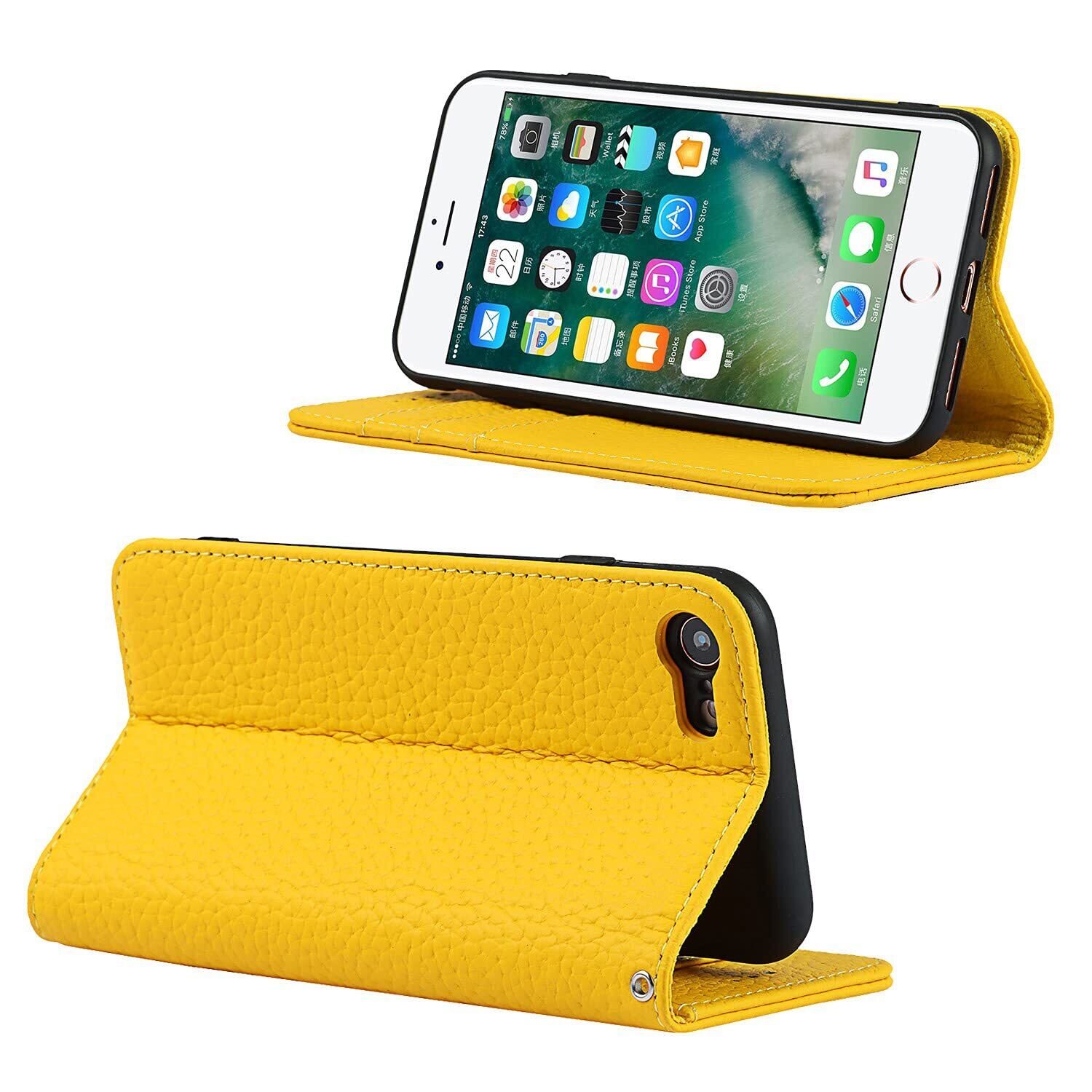 Eastwave アイフォン for iPhone SE 2022 第3世代 ケース for iPhone SE 2020 第2世代 ケース 牛革 本革 for iPhone 7 手帳型 for iPhone 8 財布型カバー 本革 手帳型 携帯スマホカバー 人気 おしゃれ 内蔵マグネット 耐汚れ - イエロー