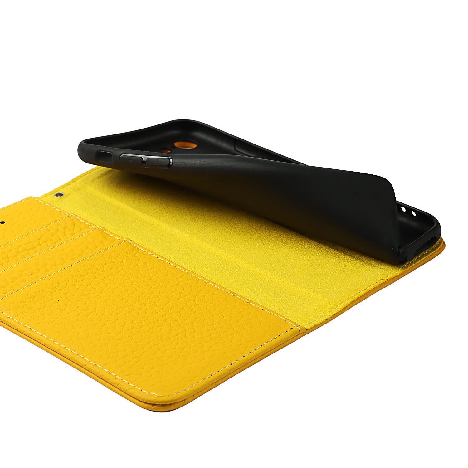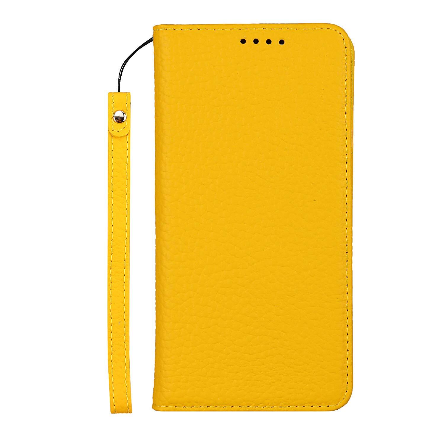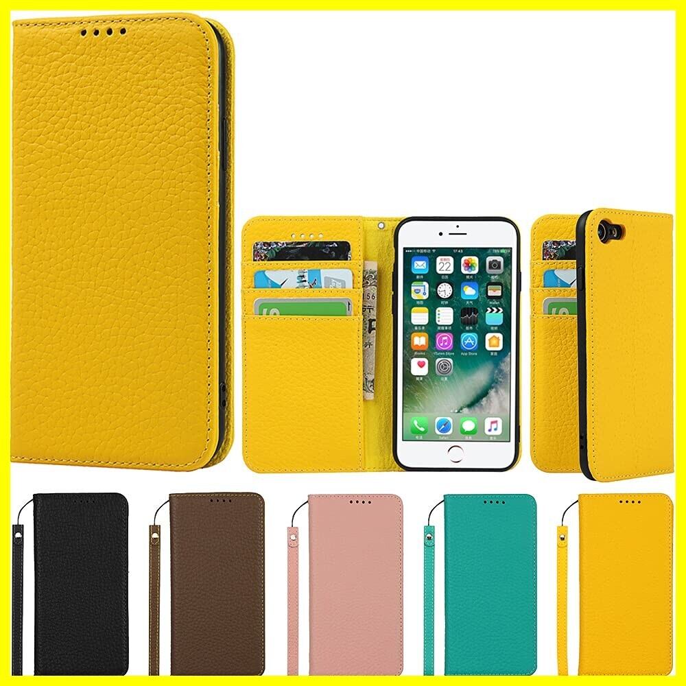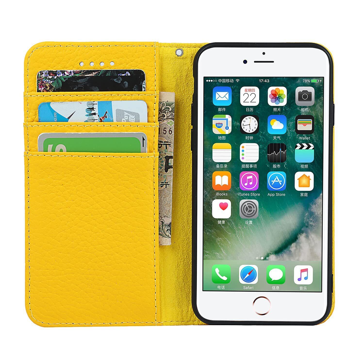 Eastwave アイフォン for iPhone SE 2022 第3世代 ケース for iPhone SE 2020 第2世代 ケース 牛革 本革 for iPhone 7 手帳型 for iPhone 8 財布型カバー 本革 手帳型 携帯スマホカバー 人気 おしゃれ 内蔵マグネット 耐汚れ - イエロー