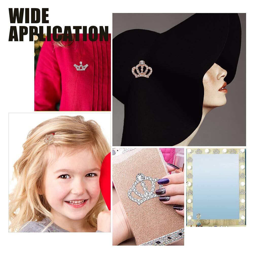 幅広い用途: これらのラインストーンのクラウン装飾は、美しく光沢のある場所を飾るために広く適用できます。携帯電話ケースなど, フォトフレーム, 鏡, カード, 文房具, バッグ, 等., アイテムに華やかさをプラスする, あなたの人生をより魅力的で楽しいものにします