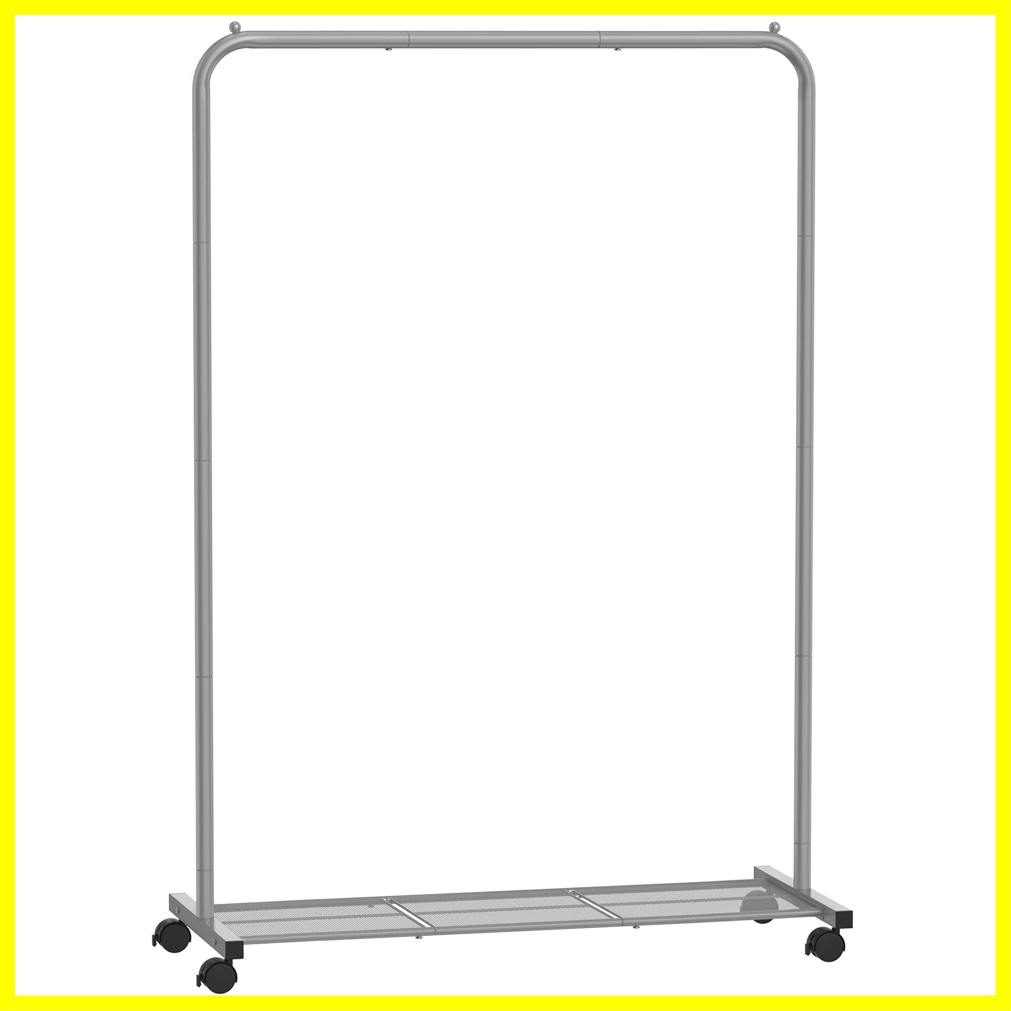 SONGIMICS ハンガーラック パイプハンガー コート掛け キャスター付き スリム 頑丈 洋服収納 室内物干し 幅91cm ちょうどいいサイズ 耐荷重約50kg グレー HSR025G01