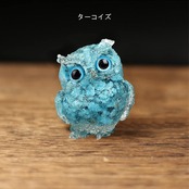 YUYAKESHI ふくろう 置物 マスコット オブジェ かわいい ミニ 梟 玄関 さざれ石入れ 手作 天然石 フクロウ インテリア 樹脂 装飾 小物 テーブル 目の色はランダム(ターコイズ)