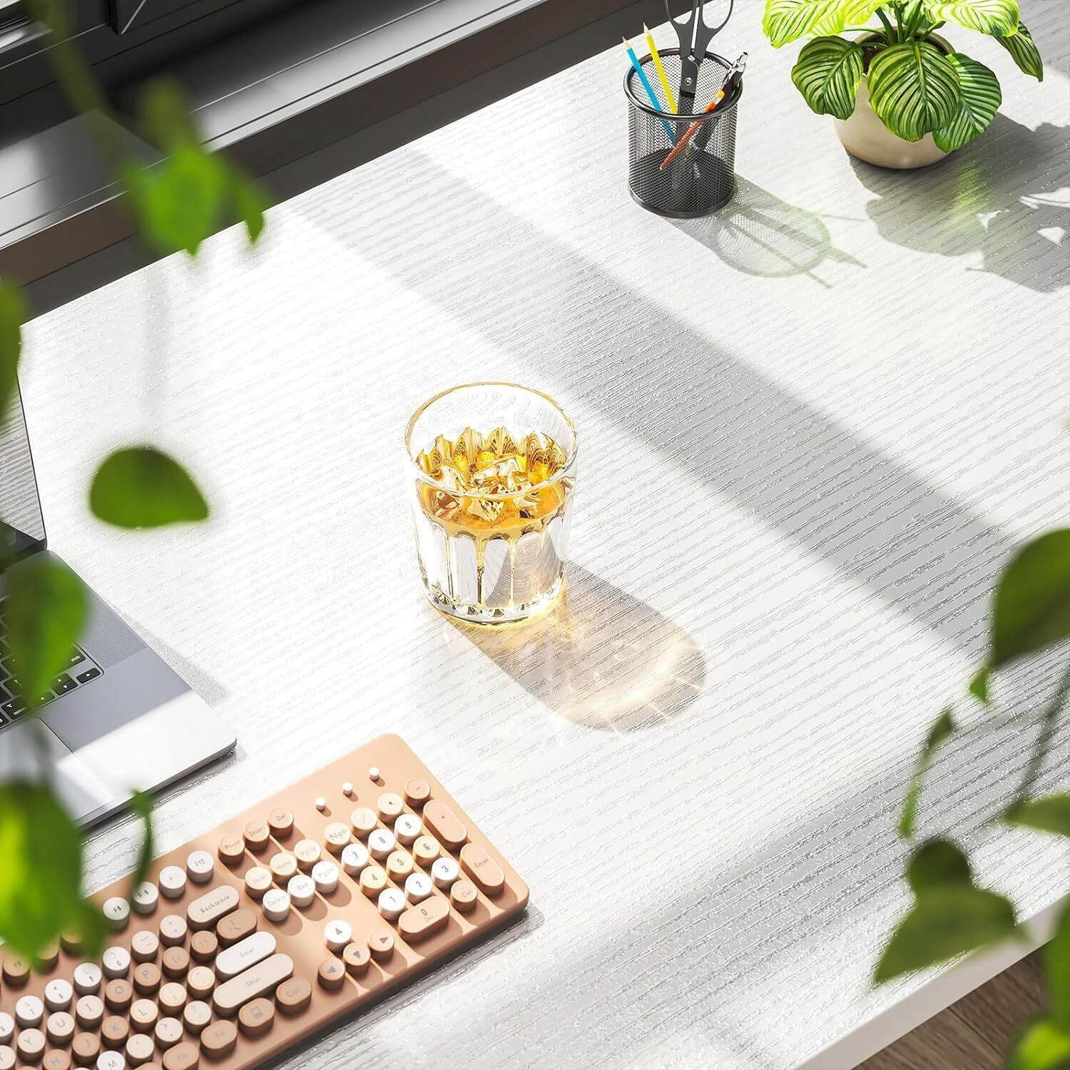 【頑丈的な設計、作りにこだわる】メラミン樹脂加工の天板で、傷、熱、水に強く、汚れまたは濡れた場合にサッと拭くだけでお手入れ簡単。強度と耐久性の高いスチールフレームを採用。しっかりと補強するため、X型バックフレーム・天板裏補強パイプが備わっており、横揺れとガタつきが全面防止。