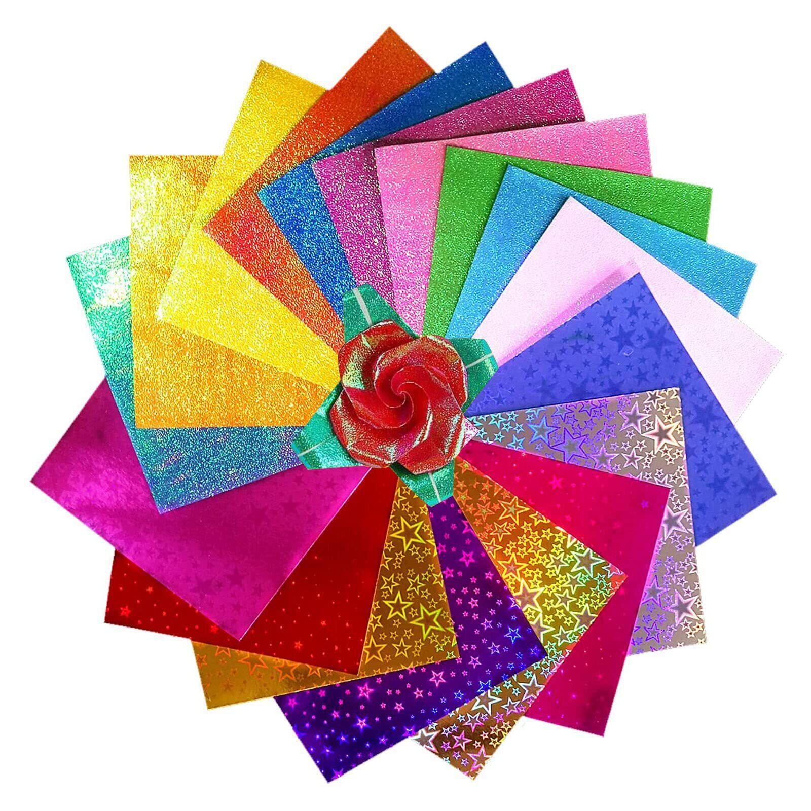 【キラキラ折り紙】オーロラカラーおりがみ、片面がキラキラで、裏面は白いです。ホログラムおりがみ、光の反射によって微妙な色の変化が楽しめる。工作やパーティー飾りにも大活躍です、色々な用途でご活用頂けます。