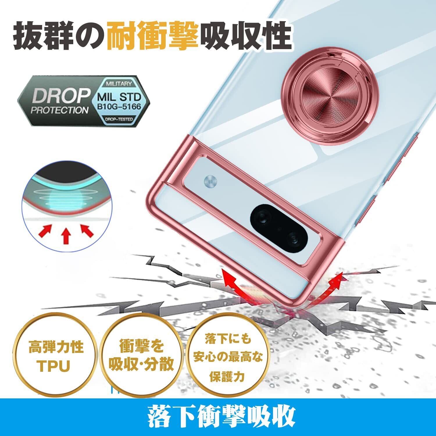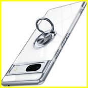 Google Pixel 7a 用 ケース クリア リング付き ピクセル 7a カバー 透明 おしゃれ OURJOY スマホケース メッキ加工 ソフトケース 耐衝撃 軽量 薄型 ストラップホール付き スタンド機能 車載ホルダー対応 携帯ケース・シルバー