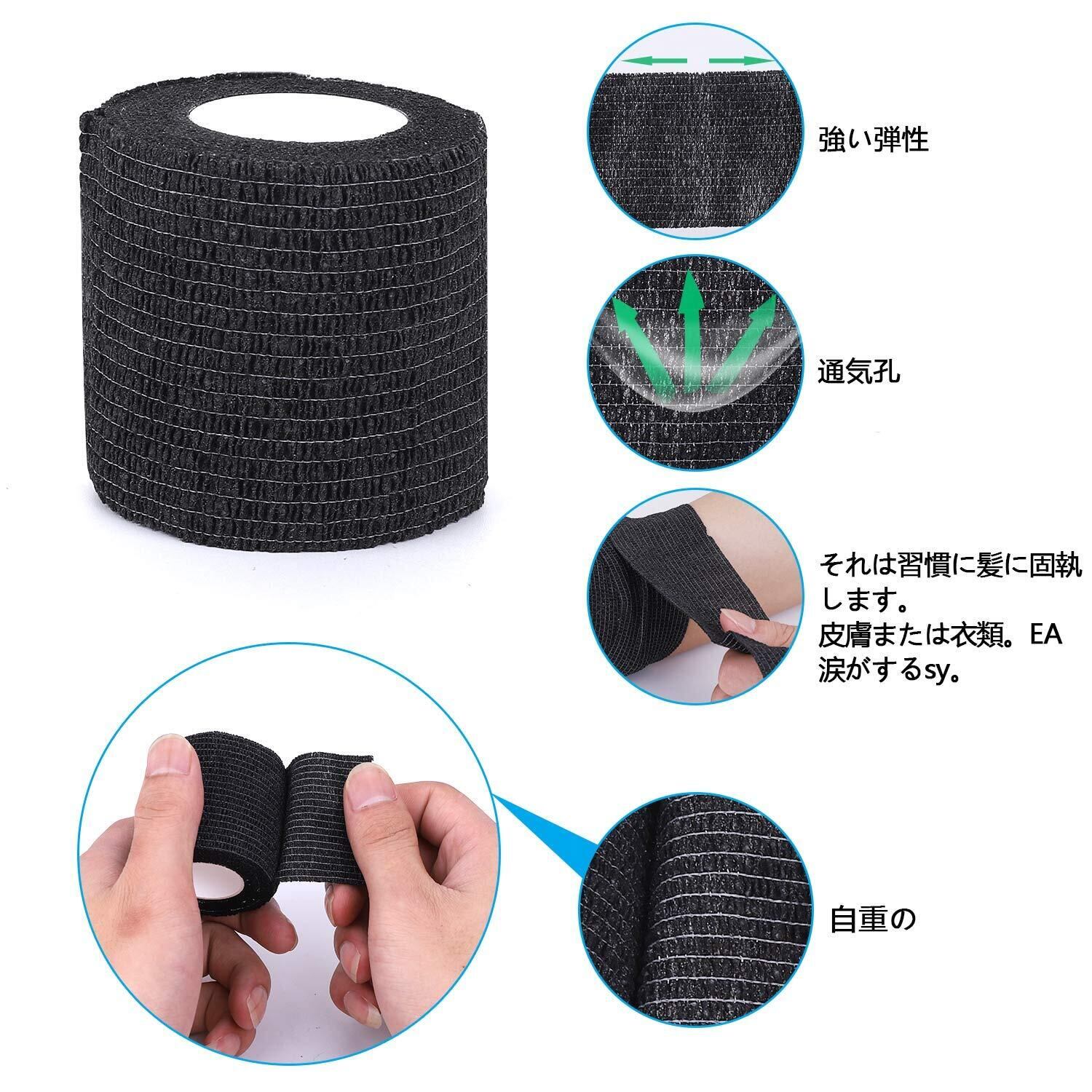 テーピング 自着性 不織布 エラスチックバンデージ 筋肉・関節サポート 弾性包帯 伸縮性 通気性 厚手タイプ (黒 16卷入 5cm)