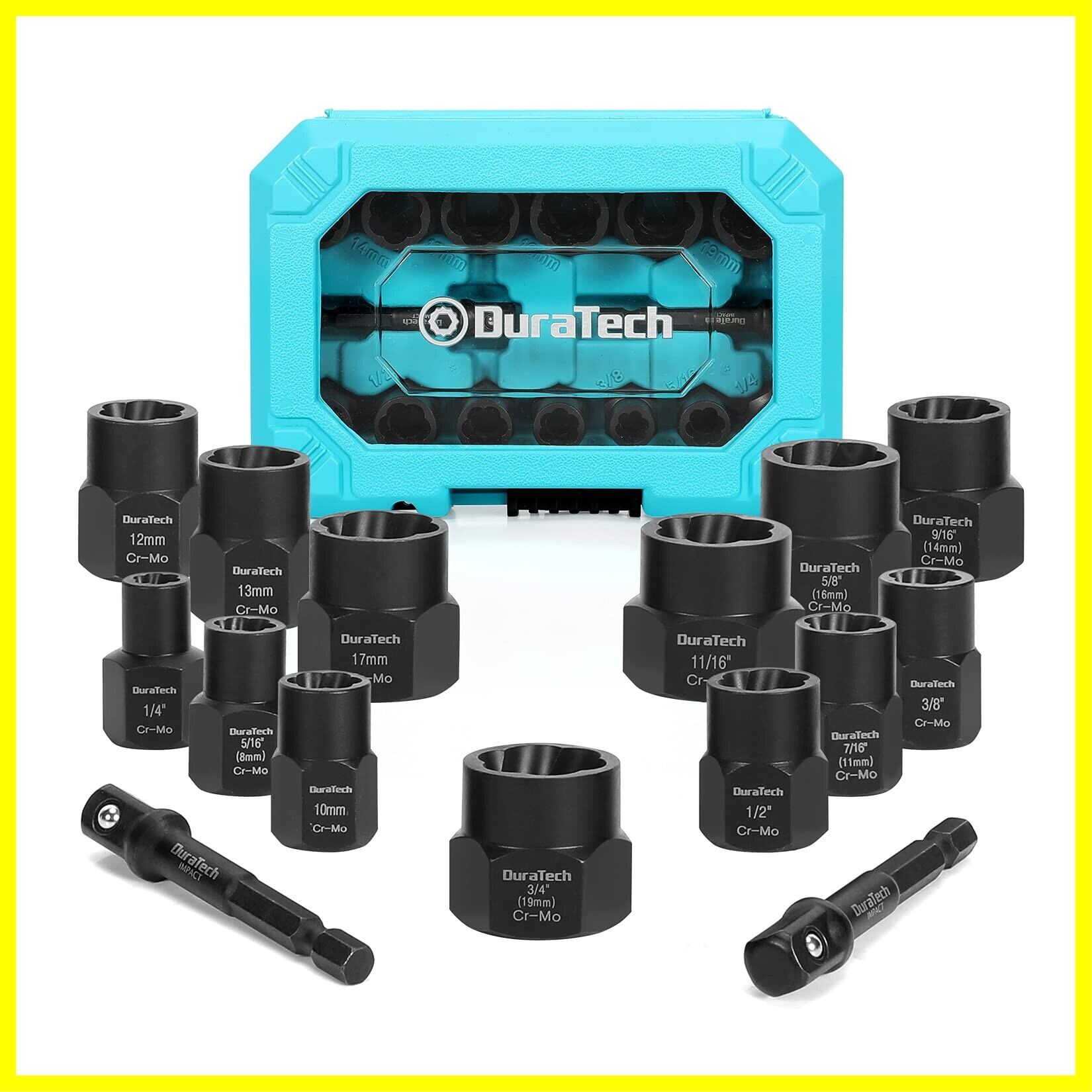 DURATECH ナット抽出ソケットセット ナットツイスター 壊れたボルト抽出器 ナットリムーバー 潰れたボルト ナットエクストラクターソケット バイク 車修理 15点セット