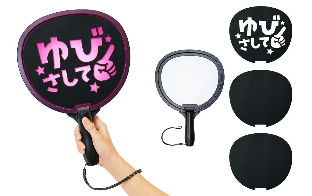 うちわ型推しライト 推し活 推し活の新定番 LEDカラーチェンジ コンサート ライブ イベント 推し S03LT-014BK 光る うちわ 切り絵 うちわ光る ファンサ