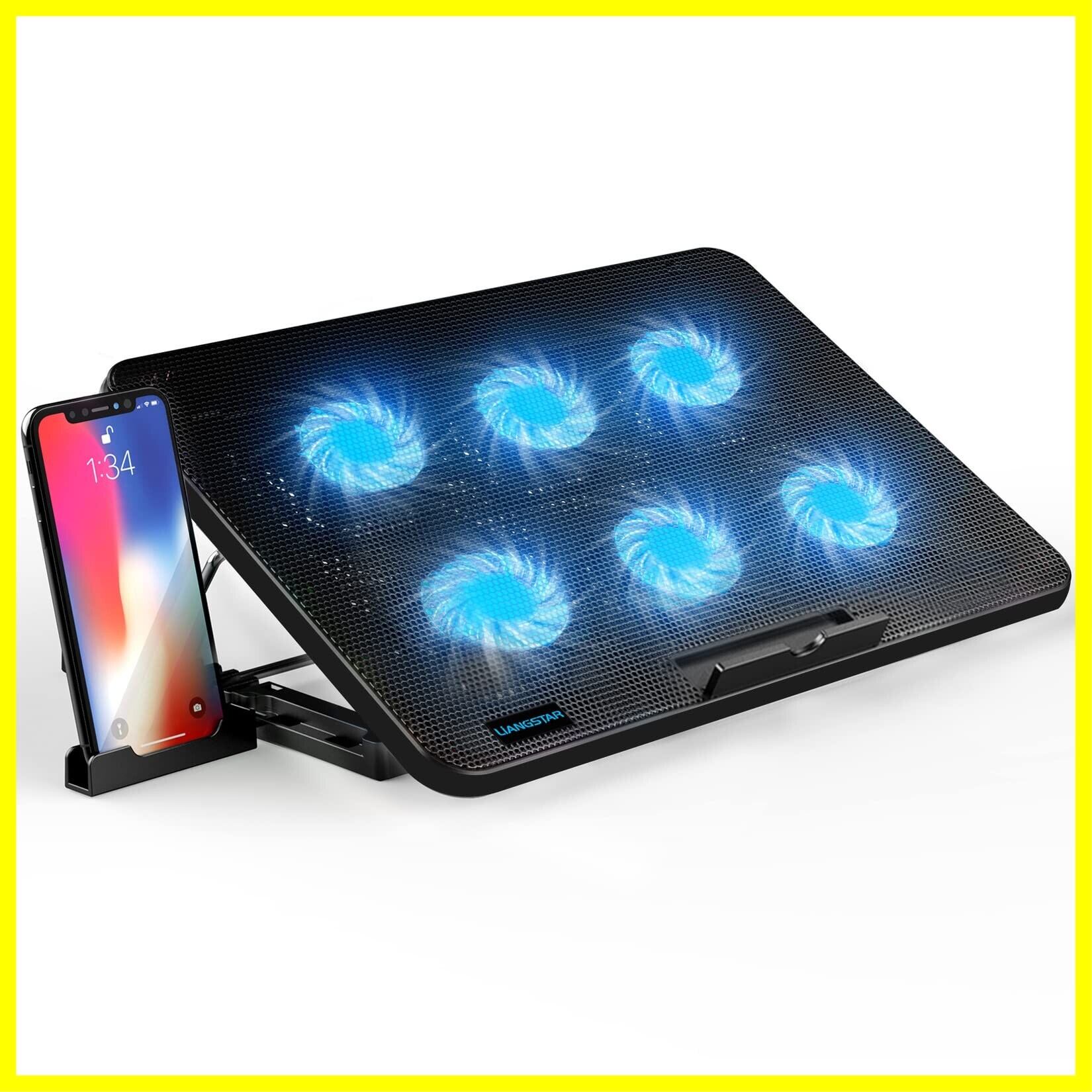 LiANGSTAR ノートパソコン冷却パッド 6つ冷却ファン ノートPCクーラー 7段階高さ 角度調整 風量調節 冷却台 2つUSBポート 静音 スマホンスタンド付き 最大17.3インチまで対応 (Blue)
