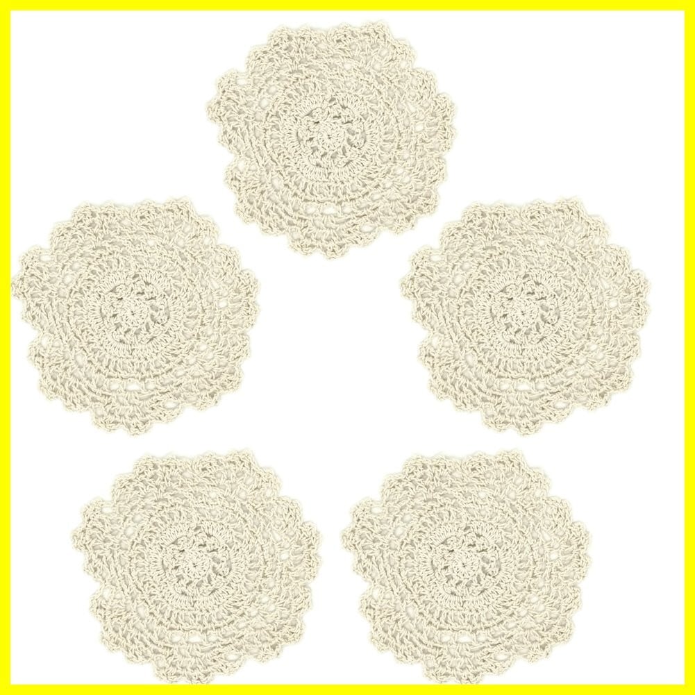 MinniLove コットンかぎ針手編みコースター 欧風コースター 断熱パット ランチョンマット 鍋敷き かぎ針手編み 吸水 洗濯可能 コットン糸 ベージュ (5個入)