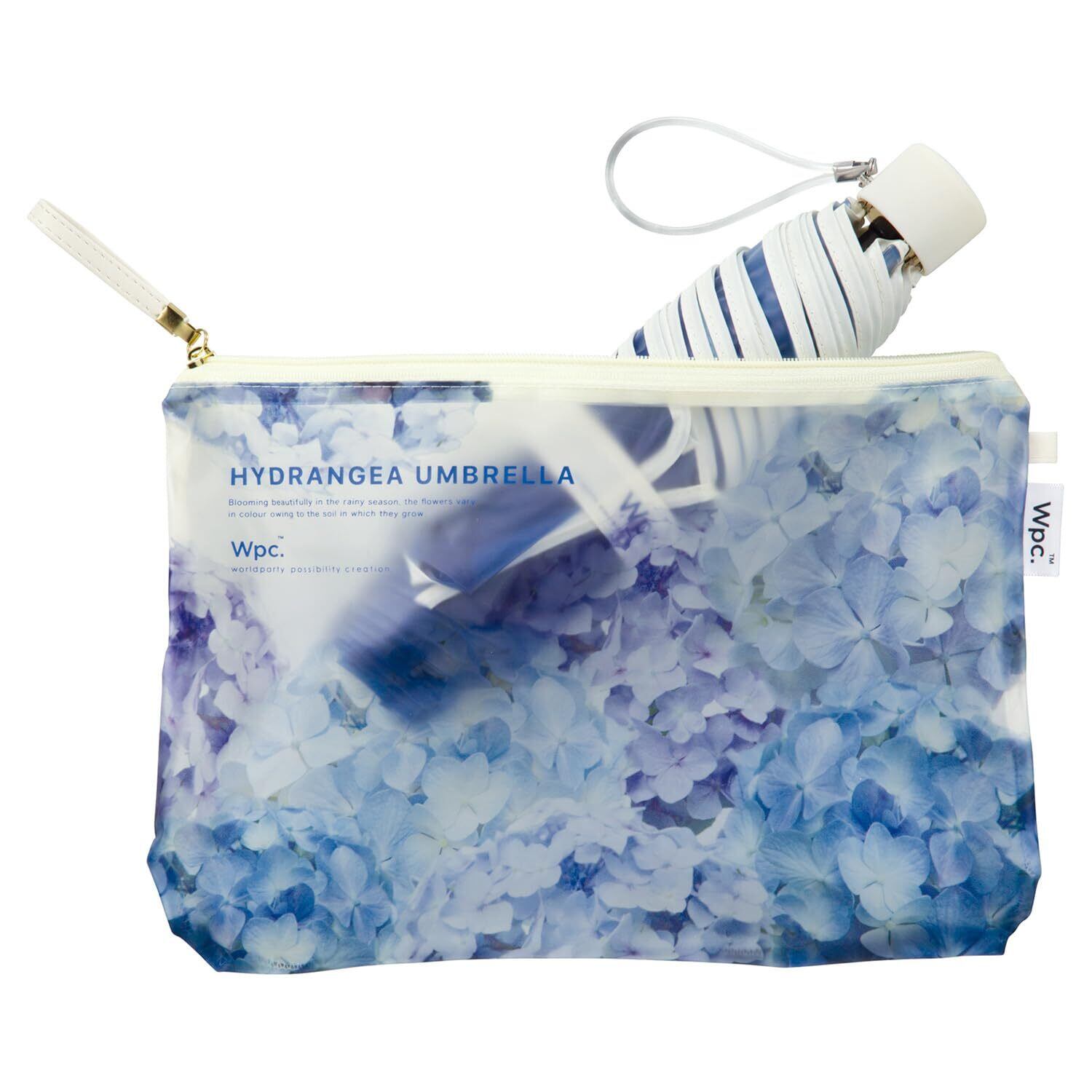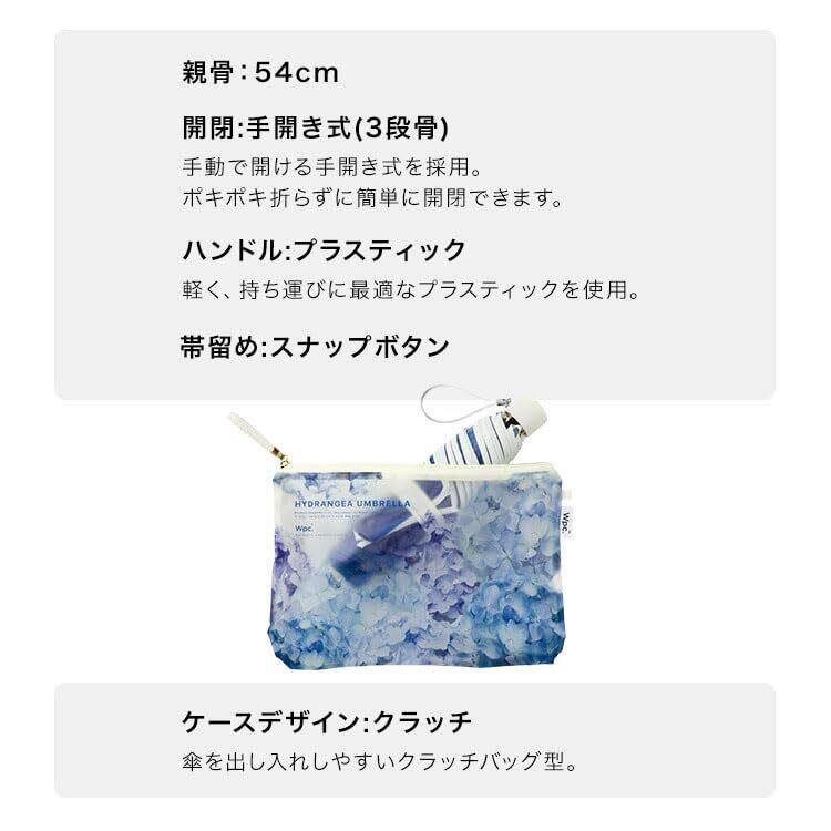 Wpc. [ビニール傘] 紫陽花アンブレラ ミニ オフ 雨傘 折りたたみ傘 長く使える 親骨54cm レディース あじさい 花 おしゃれ 可愛い 映え インスタ フォトジェニック クラッチバッグ グラデーション 女性 PT-HY001-002