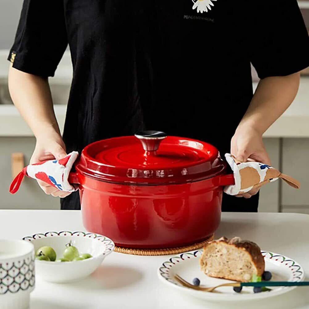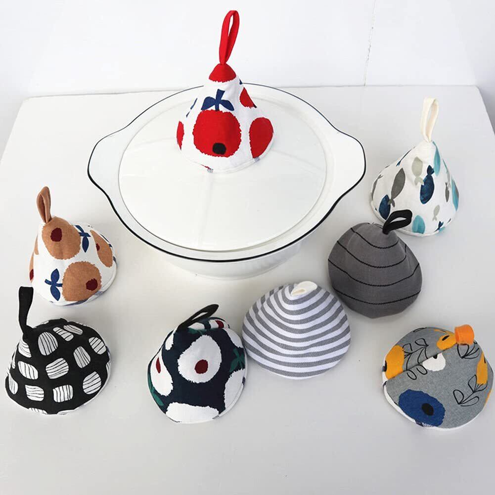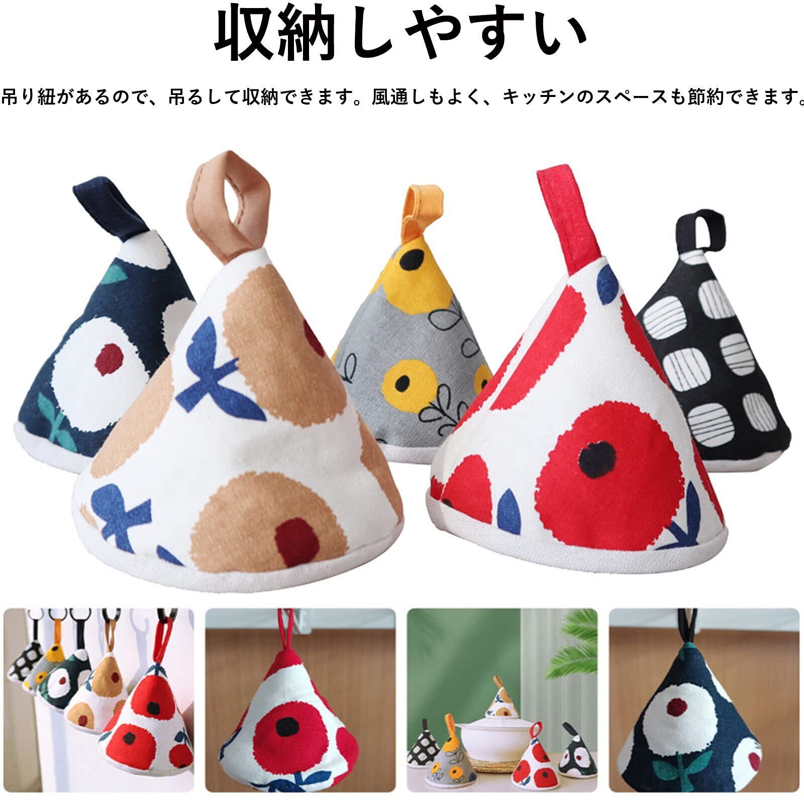【材質と耐熱性】三角形キャップ、手裁断縫製、おしゃれで美しい、肌触りがよいです。製品全体を高級大気に見せることができ、ファッションアイテムになり、耐熱性、断熱性に優れ、やけどを防ぐことができます。そして生地が厚すぎず、鍋蓋などを握りやすいです。