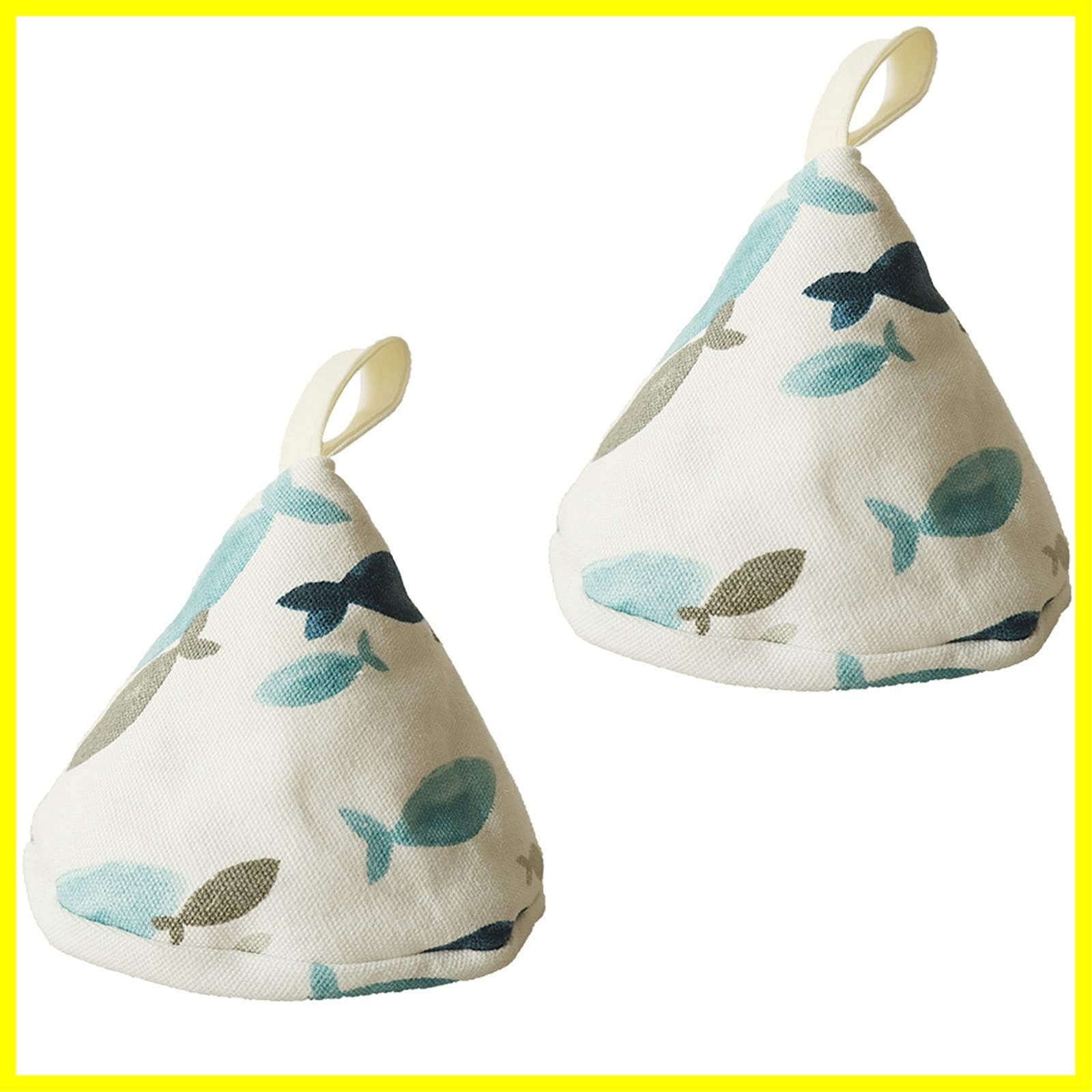 Hakona 三角鍋つかみ 2個セット おしゃれ かわいい 魚の柄 北欧風 耐熱ミトン アイロン止め取っ手 鍋蓋 滑り止め 厚手 両手鍋 クッキング用 調理用手袋 左右兼用 男女兼用 ライトブルー