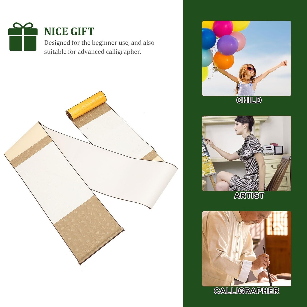 【美しいデザイン】書画用巻物は初心者用に設計されており、上級書家にも適しています。吊り下げ式のデザインにより、お部屋のインテリアとしてもお楽しみいただけます。