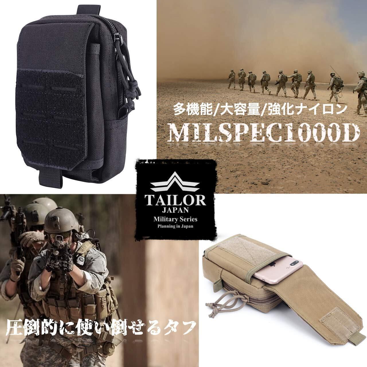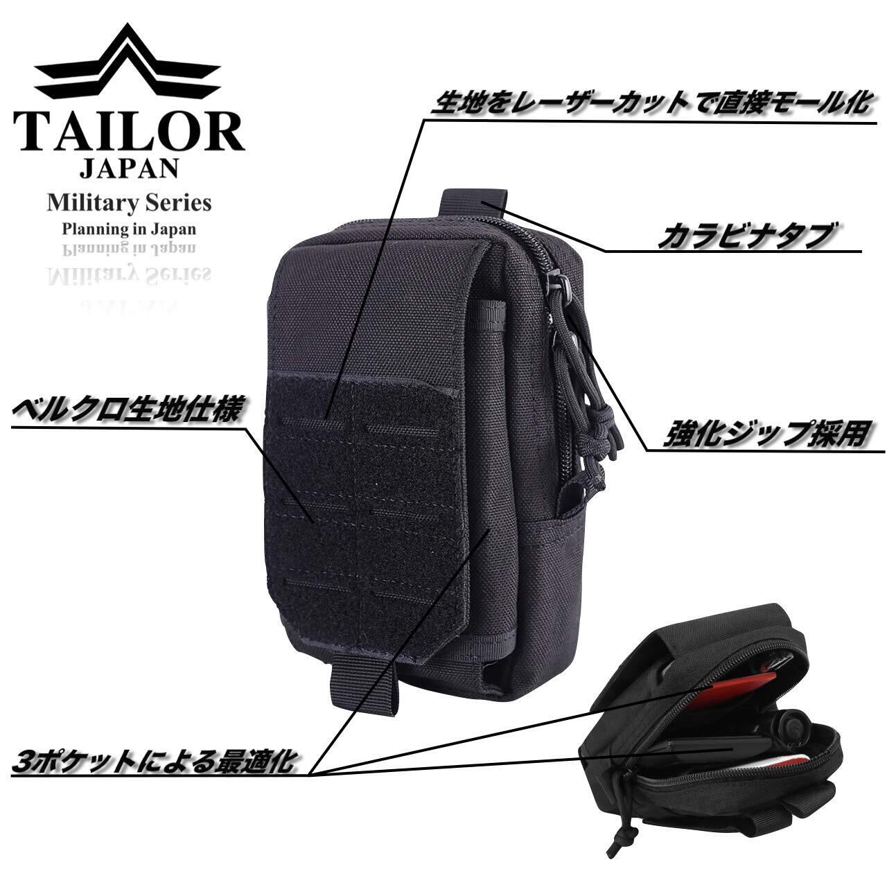 【TAILOR JAPAN】タクティカルポーチ ミリタリーポーチ サバゲーポーチ スマホ サバゲー ベルクロ ミリタリーバッグ アウトドア スポーツ 小物入れ 黒 Black (ブラック)
