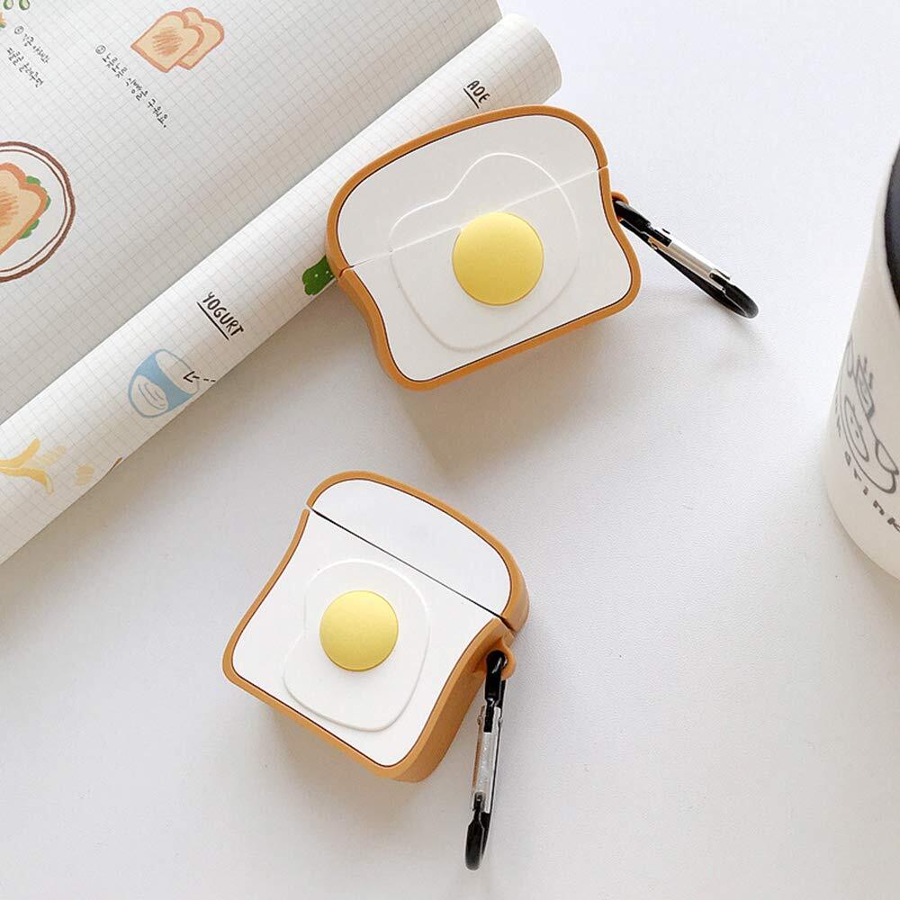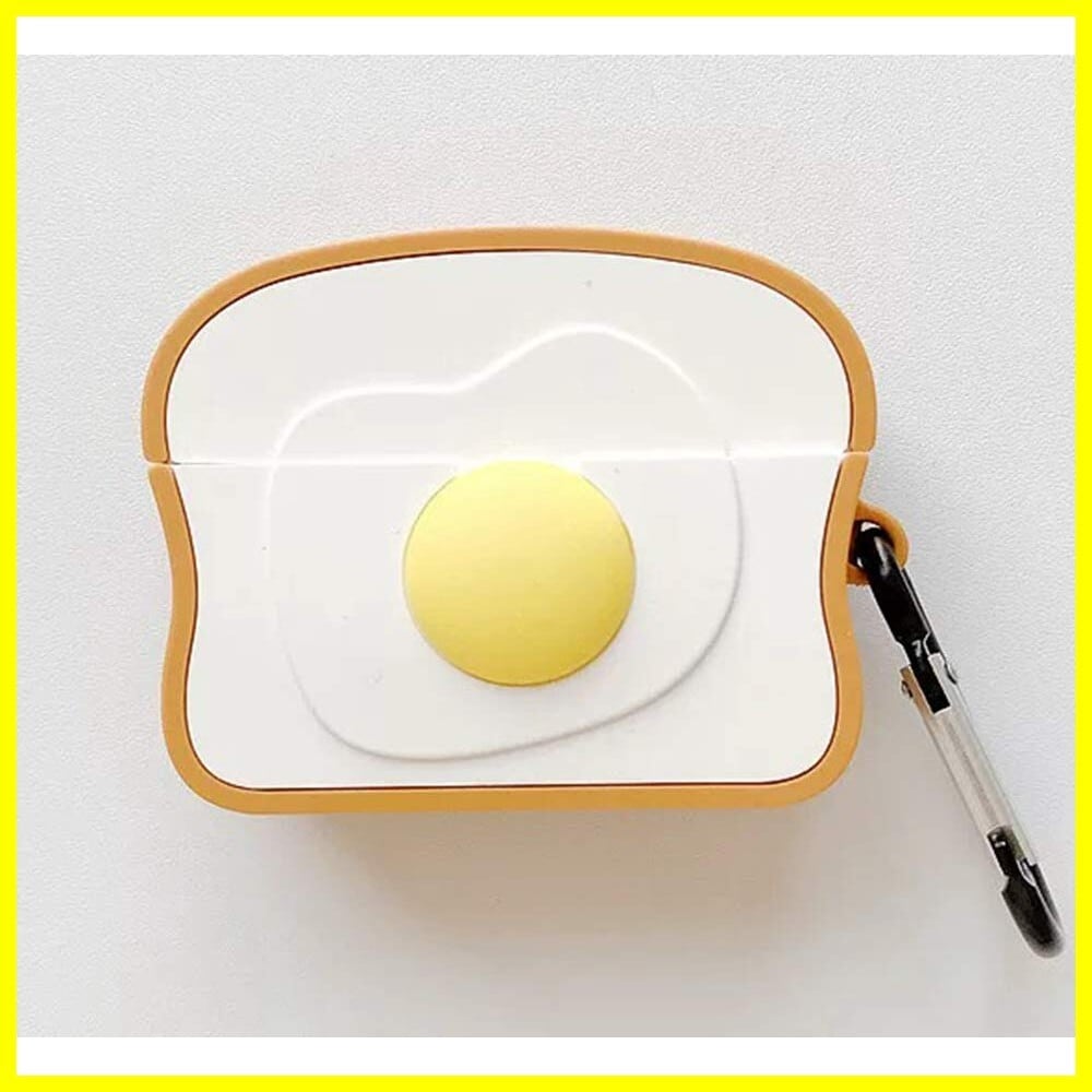 AirPods Pro AirPods 用 ケース カバー たまご 食パン ホットドッグエアポッドケース マスコット かわいい ワイヤレス充電モデルも対応! キャラクター カラビナ付き (AirPods Pro, 食パン)