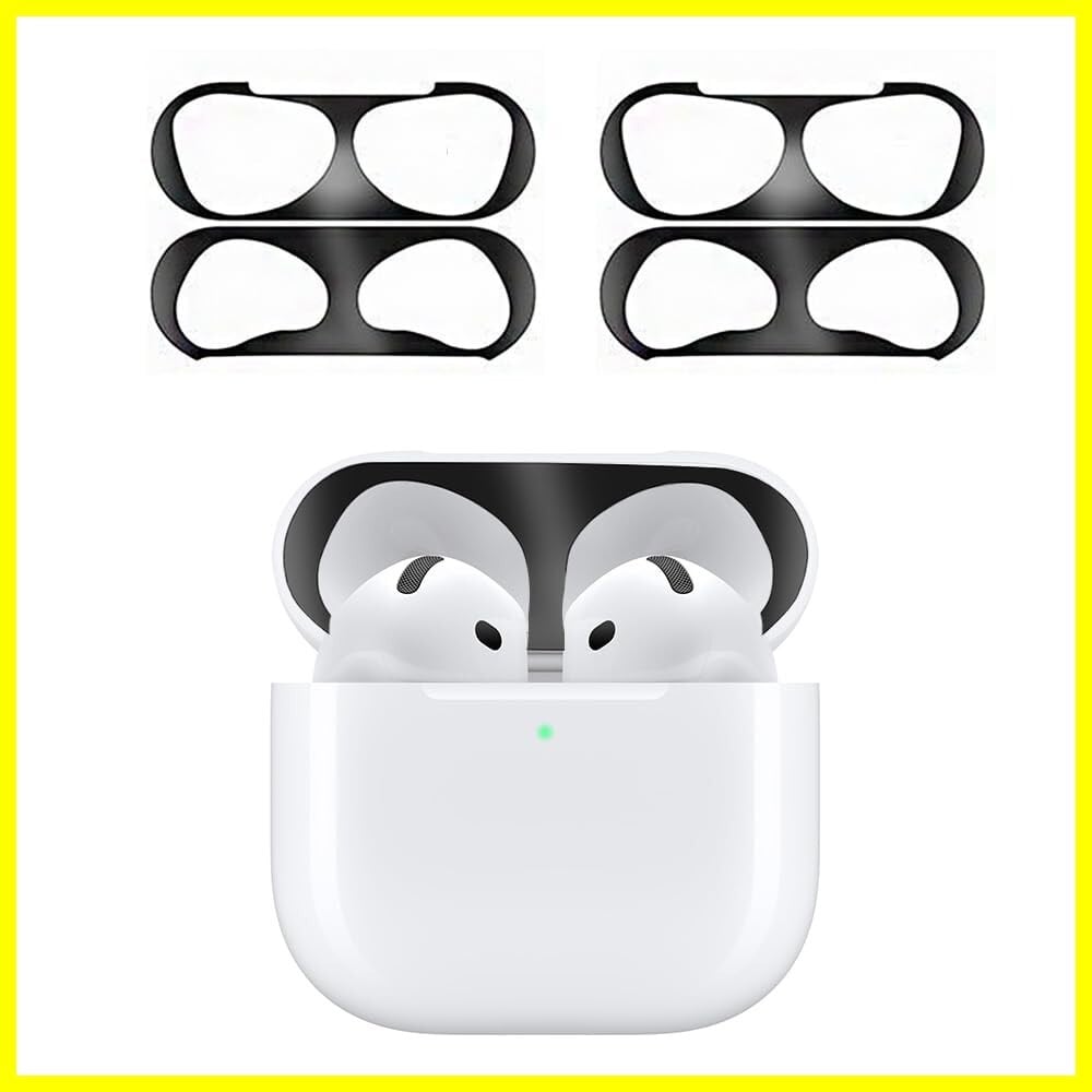 [2025強化版] AMAPC for AirPods 4 ダストガード エアーポッズ 4用 ガードカバー 故障防止 吸着 ほこり ゴミ 金属製 侵入防止 防塵 粉塵防止 ブラック 4枚(2セット)