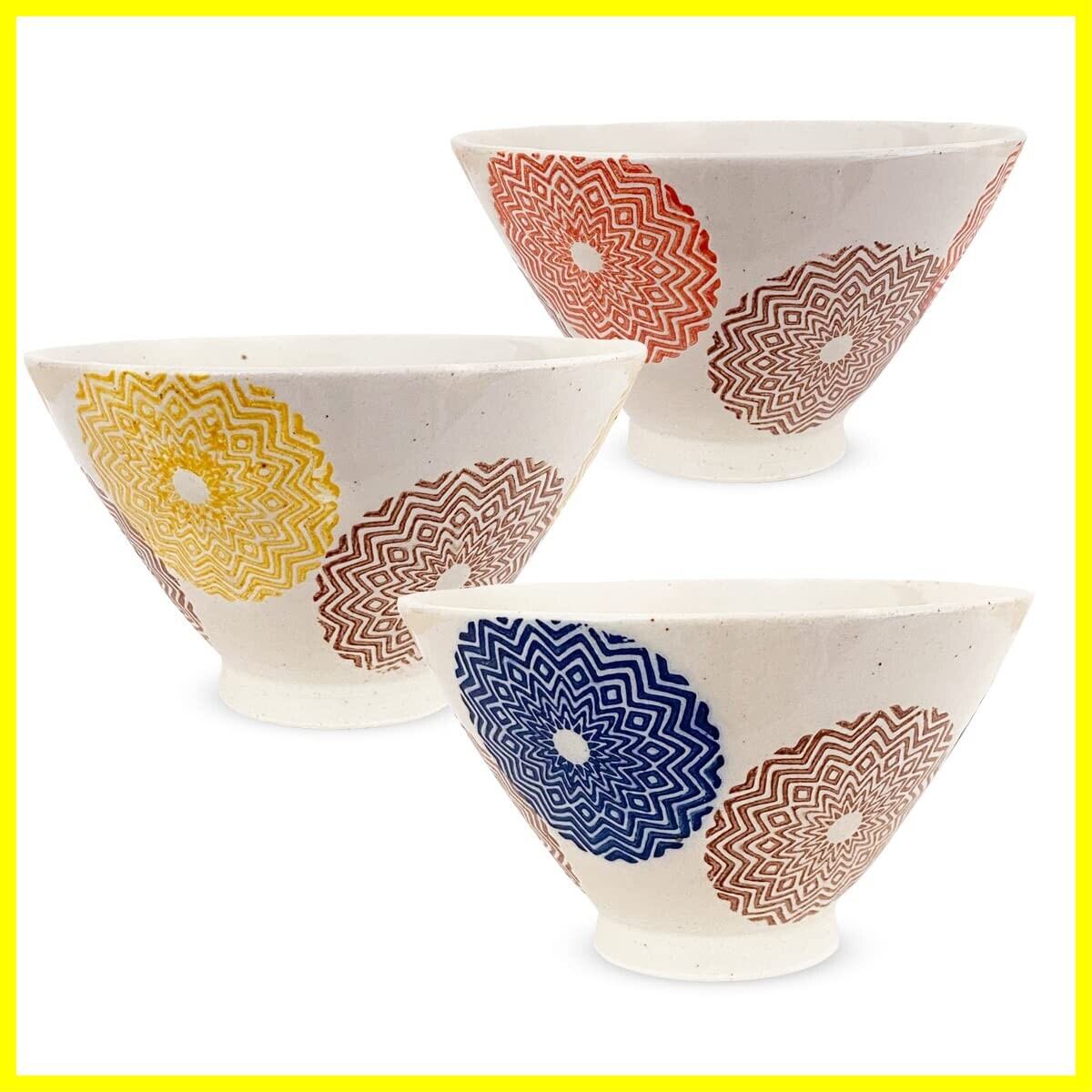J-kitchens 勲山窯 茶碗 3個セット直径 11.5cm 高さ 6.8cm エスニック丸紋 波佐見焼 日本製