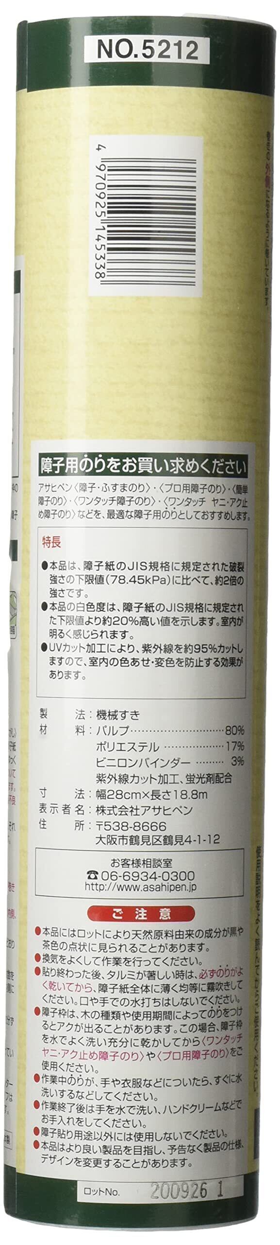 アサヒペン 障子紙 UVカット 2倍強い明るい障子紙 幅28cm×長さ18.8m 品番5212 雲竜 のり貼り U Vカット95%カット 色あせ 変色防止 腰板つき障子4枚分 日本製