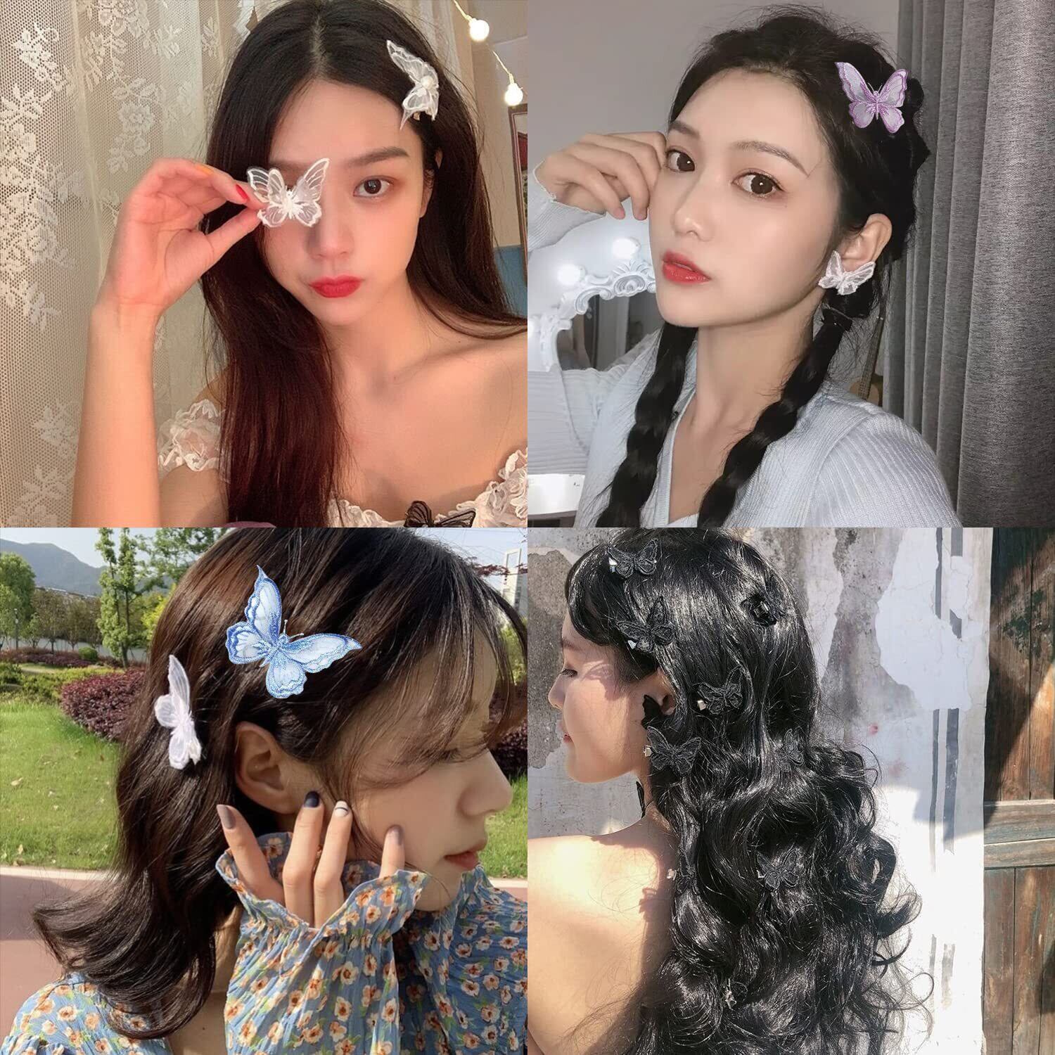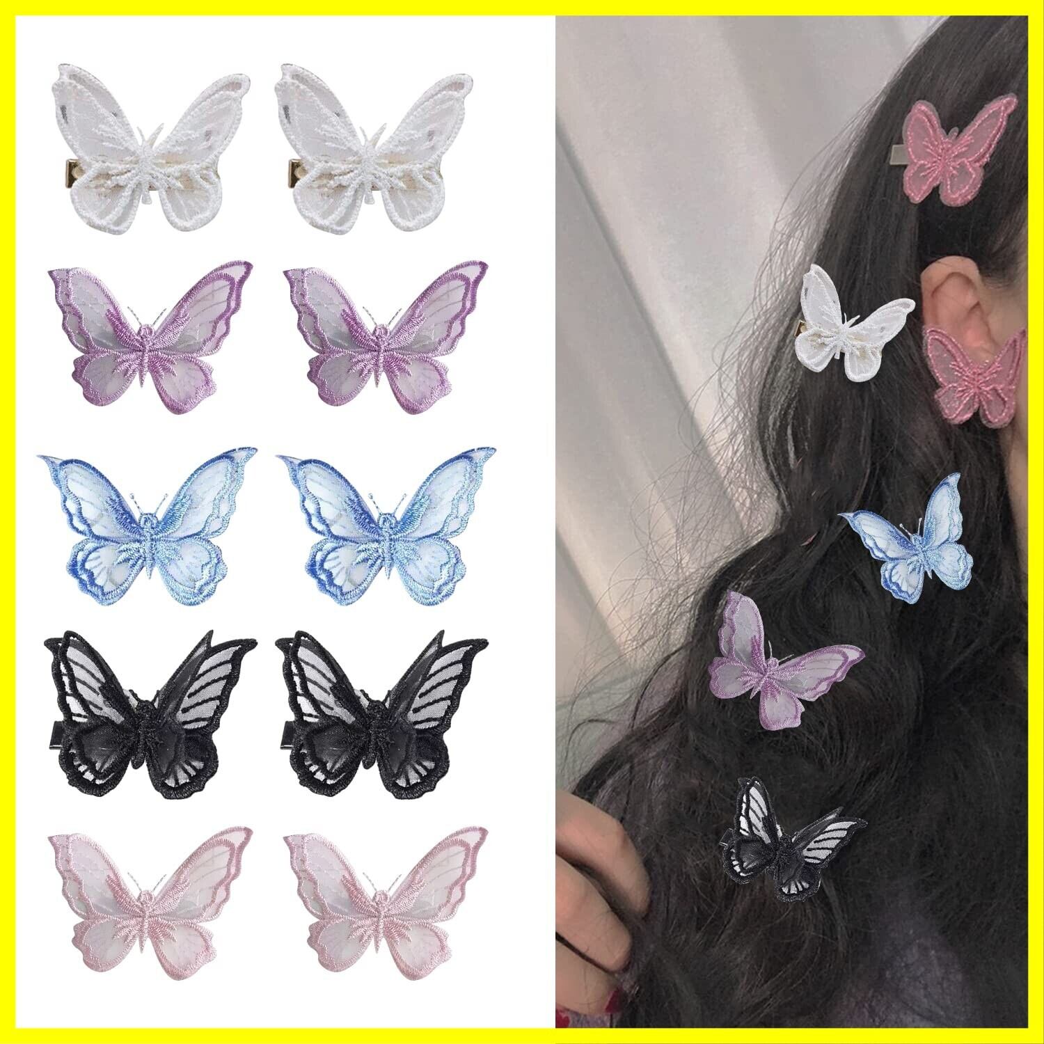 【十分な色数】合計10匹の美しい蝶の髪飾り。白、紫、青、黒、ピンク、各色2個。色もバラエティに富んでいて量も豊富なので、日常の中で自由に色を選べます。さまざまなスタイルの服によく合わせることができます