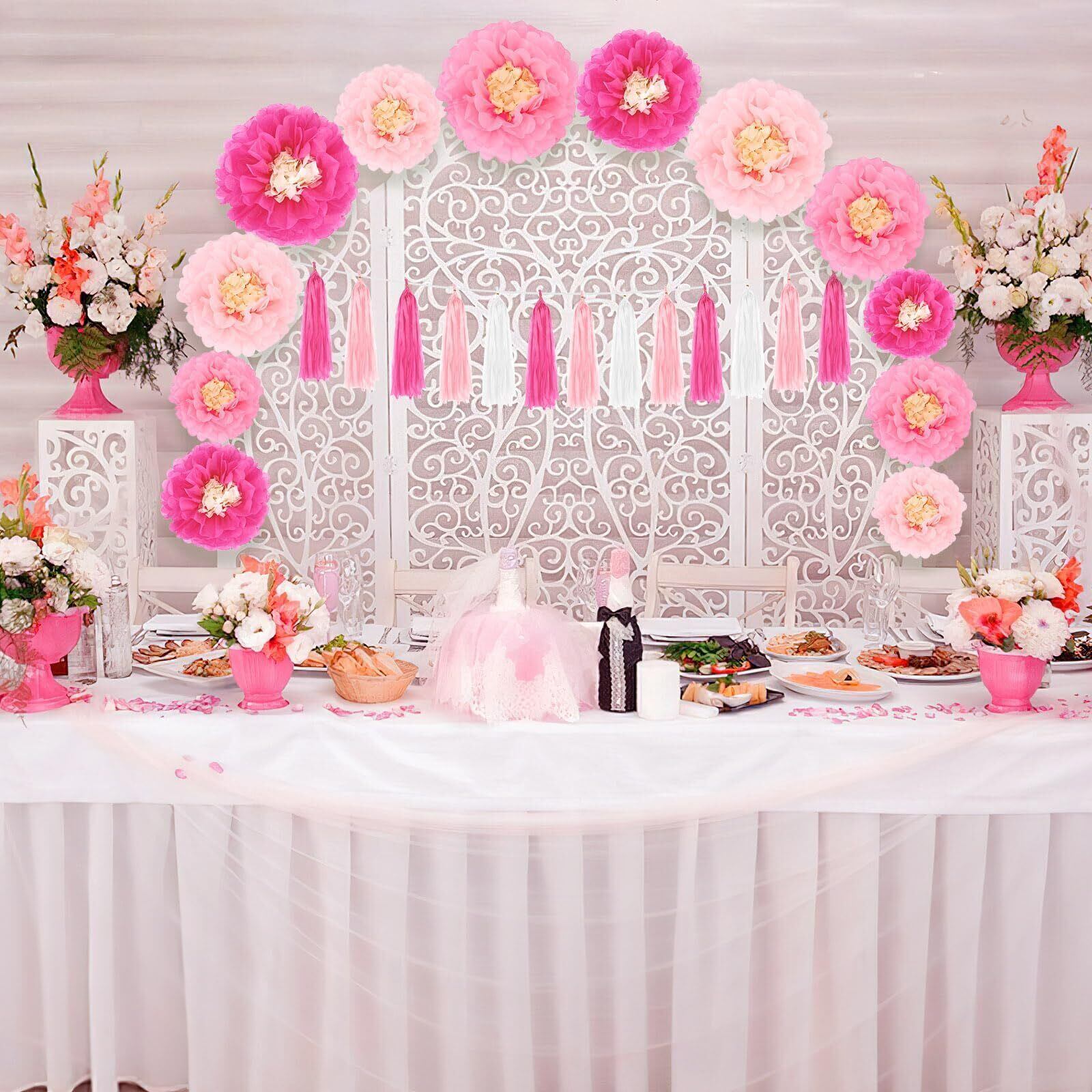 華やかに飾る:ピンク ペーパーフラワーは合計4色、1色ずつ4個入っており、サイズがそれぞれ異なります。豊富なカラーとサイズ、組み立てられた立体感と相まって、華やかで目を引き、雰囲気が溢れています。桜 飾りのような外観で、特に春のバースデー 飾りにおススメです