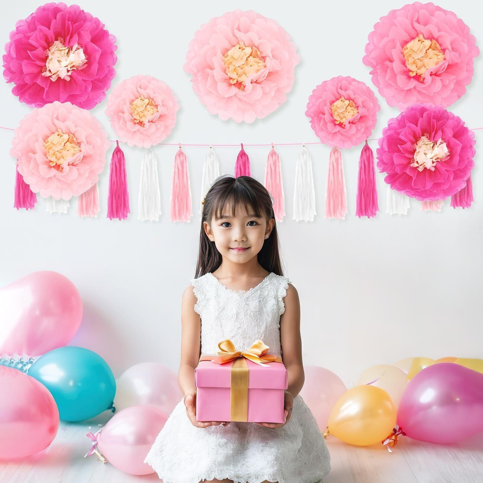 誕生日ガーランド ご注意:ピンク ペーパーポンポン 桜 飾りは紙製品ですから、水や油に弱くて、濡れないように保管してください。または、強く引っ張ると破れることがございますので、組み立てる際にゆっくりしてくだざい