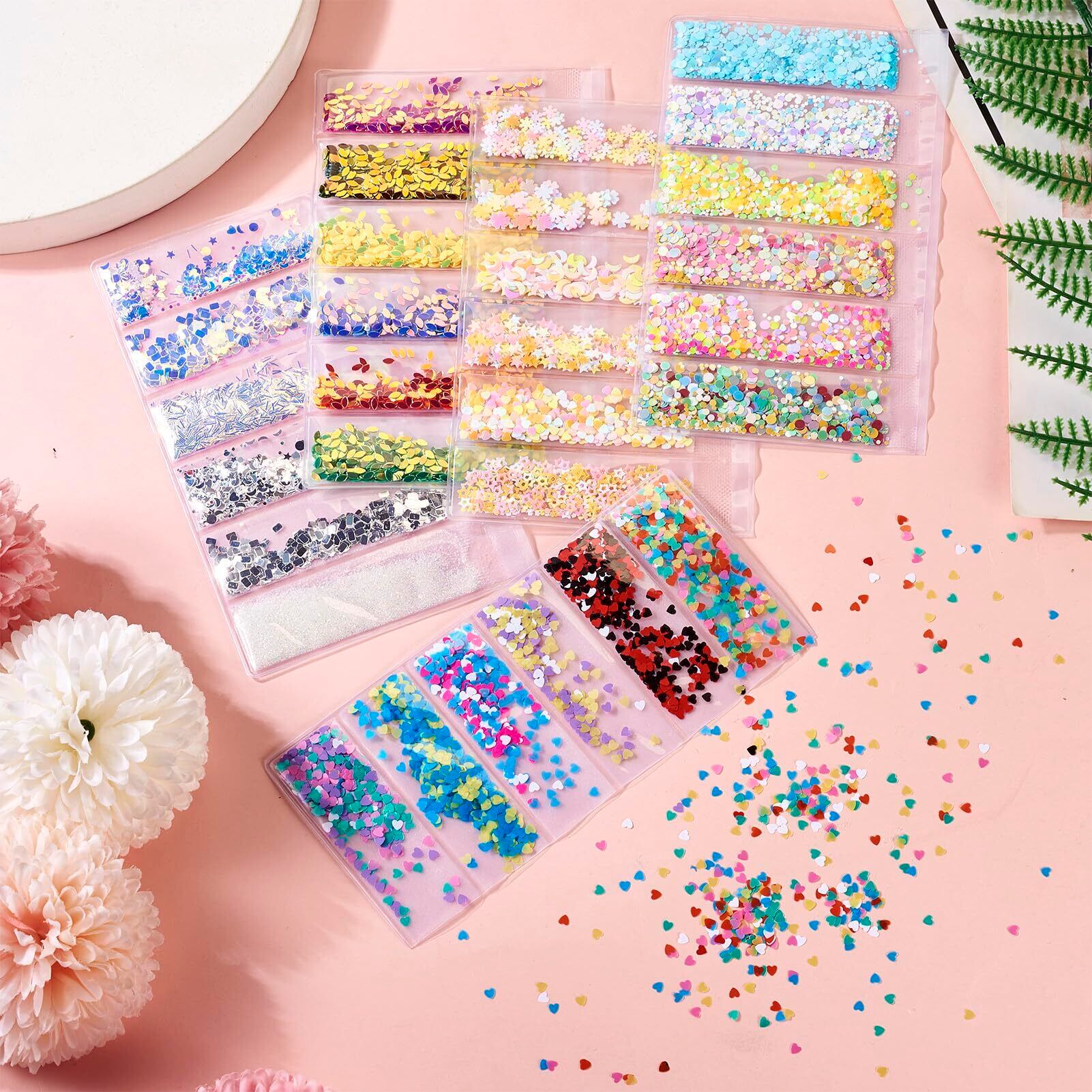 Beadthoven カラフル スパンコール 混合形状 プラスチック製 キラキラ デコ素材 5パック入り ネイルスパンコール ブレンドグリッター レジンパーツ ジュエリーパーツ 手芸用 装飾用 アクセサリー材料 DIY ハンドメイド ジェルネイル つめ飾り ネイルアート用品 レジン封入物 手作り素材 クラフト用品