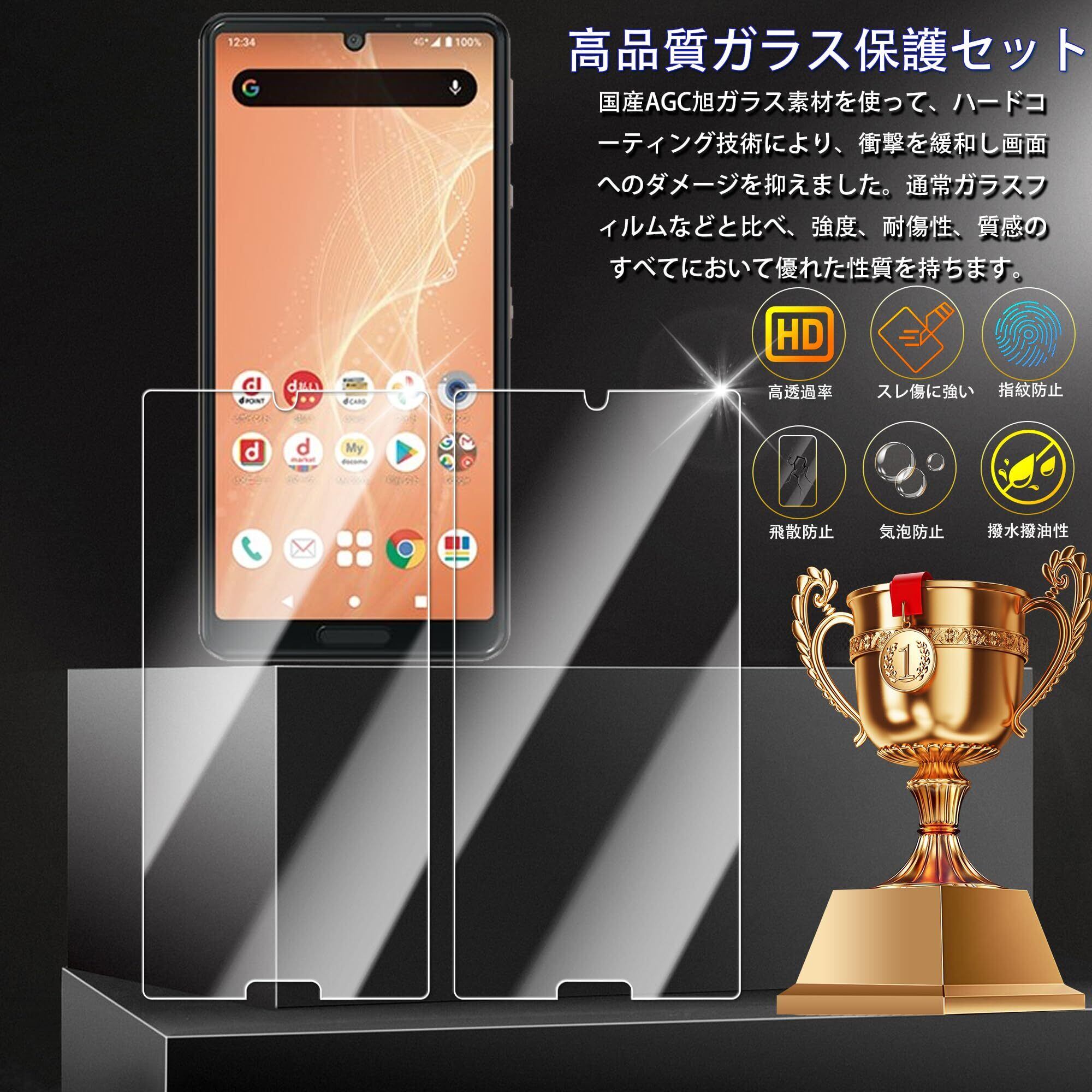 HKKAIS aquos sense4 フィルム【2+2 セット】ガイド枠付き 日本製硝子採用 AQUOS sense4 SH-41A Sense4 Lite SH-RM15 / AQUOS sense5G SHG03 / SH-53A 用 ガラスフィルム カメラフィルム 強化 ガラス 液晶画面 保護フィルム