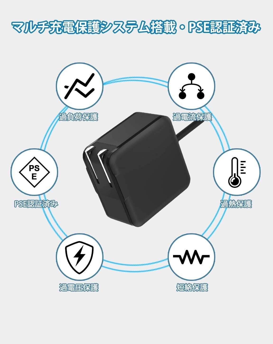 特徴 格納式プラグ, 短絡保護, 軽量デザイン, 高速充電