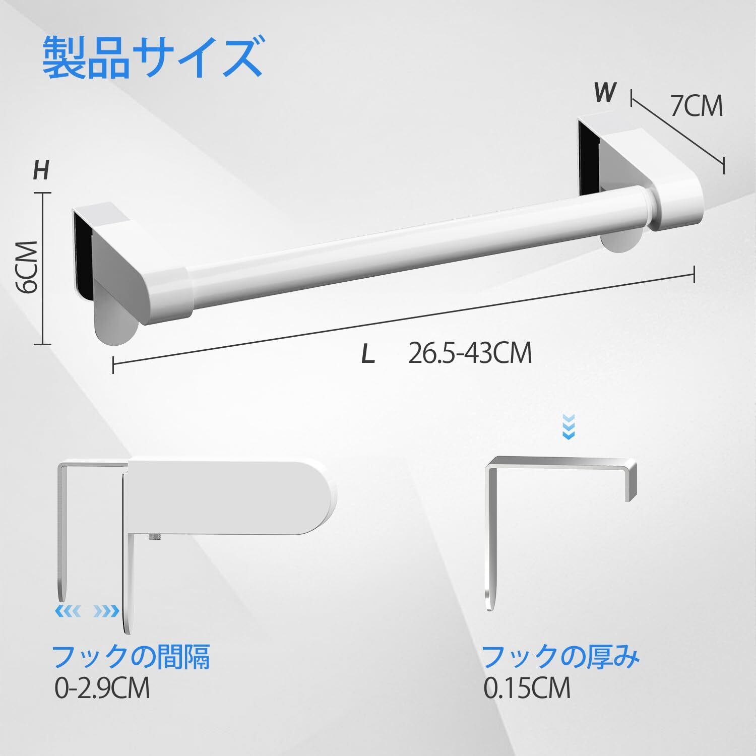 VEHHE タオル掛け キッチン EVAフォームパッド付き 調節可能なフック付きバスタオルハンガー ステンレス製 W7×L26.5-43×H6cm 取付簡単(ホワイト)