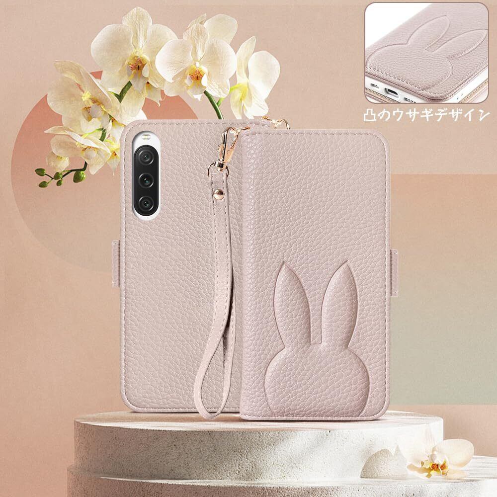 MAGICASE For Xperia 10 V ケース 手帳型 かわいい Xperia 10 V SO-52D ケース 人気 SO-52d ケース SOG11 ケース 横置き機能 エクスペリア 10 V ケース 手帳型 女性 おしゃれ 便利 カード収納 動物 高級PUレザー エクスペリア10 5 ケース 男女兼用 贈り物 どうぶつ 兎柄(/SO-52D/SOG11,6.1"),アプリコット