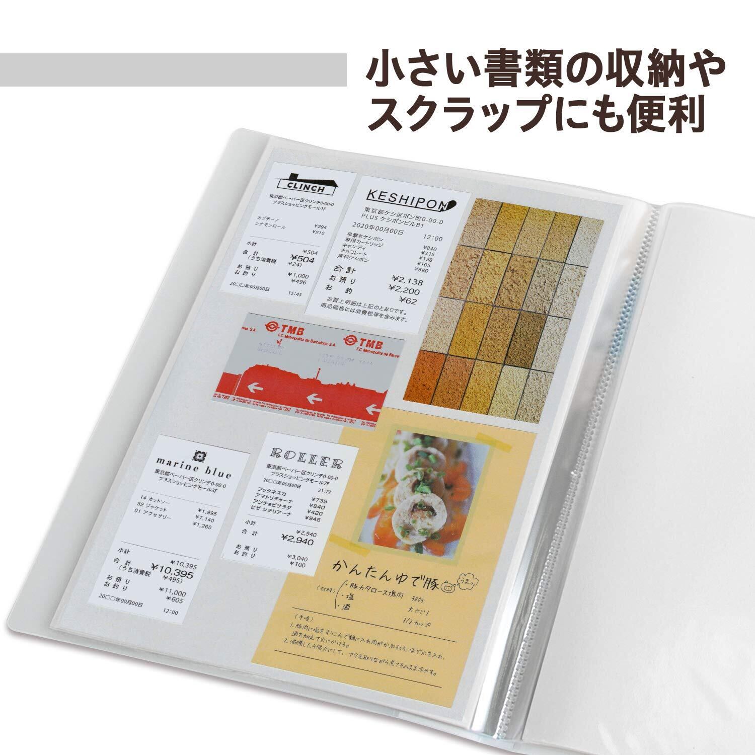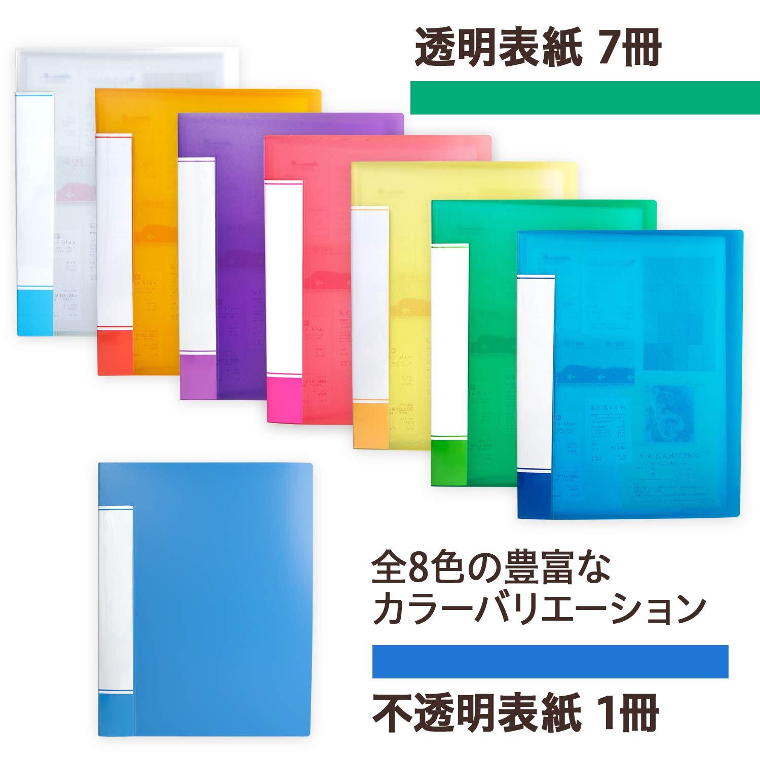 プラス クリアファイル 透明ポケットファイル 中紙入り A4 40ポケット カラーミックス 8冊
