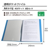 表紙:45%再生ポリプロピレン(PP)/ポケット:40%再生ポリプロピレン(PP)、エンボスタイプ40μm(0.04mm)