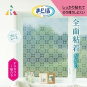 アール(R) マドピタシートすりガラス対応 断熱シート まど活 ブルーレース 90×180(cm) 紫外線約95%カット 防虫効力 カット可能 H-154