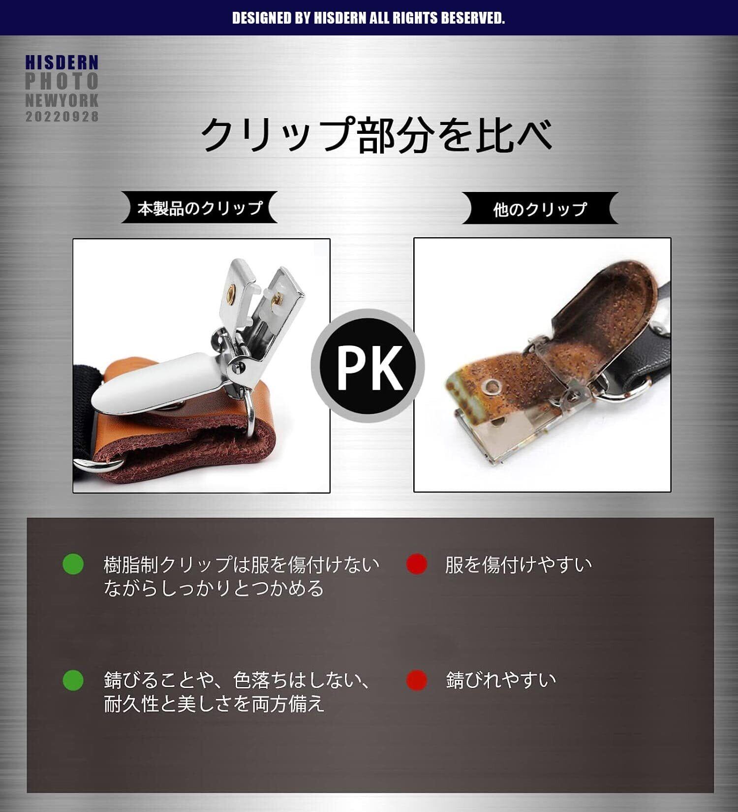 日常着にも、フォーマル、ビジネス、作業用の場合にもぴったりです。また、彼氏、友人とお父さんへのプレゼントとしておすすめです。ご使用上のご注意:1.サスペンダーを装着する際は、クリップに過度の力が掛かる状態(ズボンを吊り上げる以上の力)でのご使用は避けてください。2.サスペンダーのクリップに厚手の生地などを挟んで無理やりクリップを閉じないで。3.ズボンとベルトを一緒に挟んだりしない。4.その他、サスペンダーやクリップに過度の力を加えての開閉しないようにご注意ください。