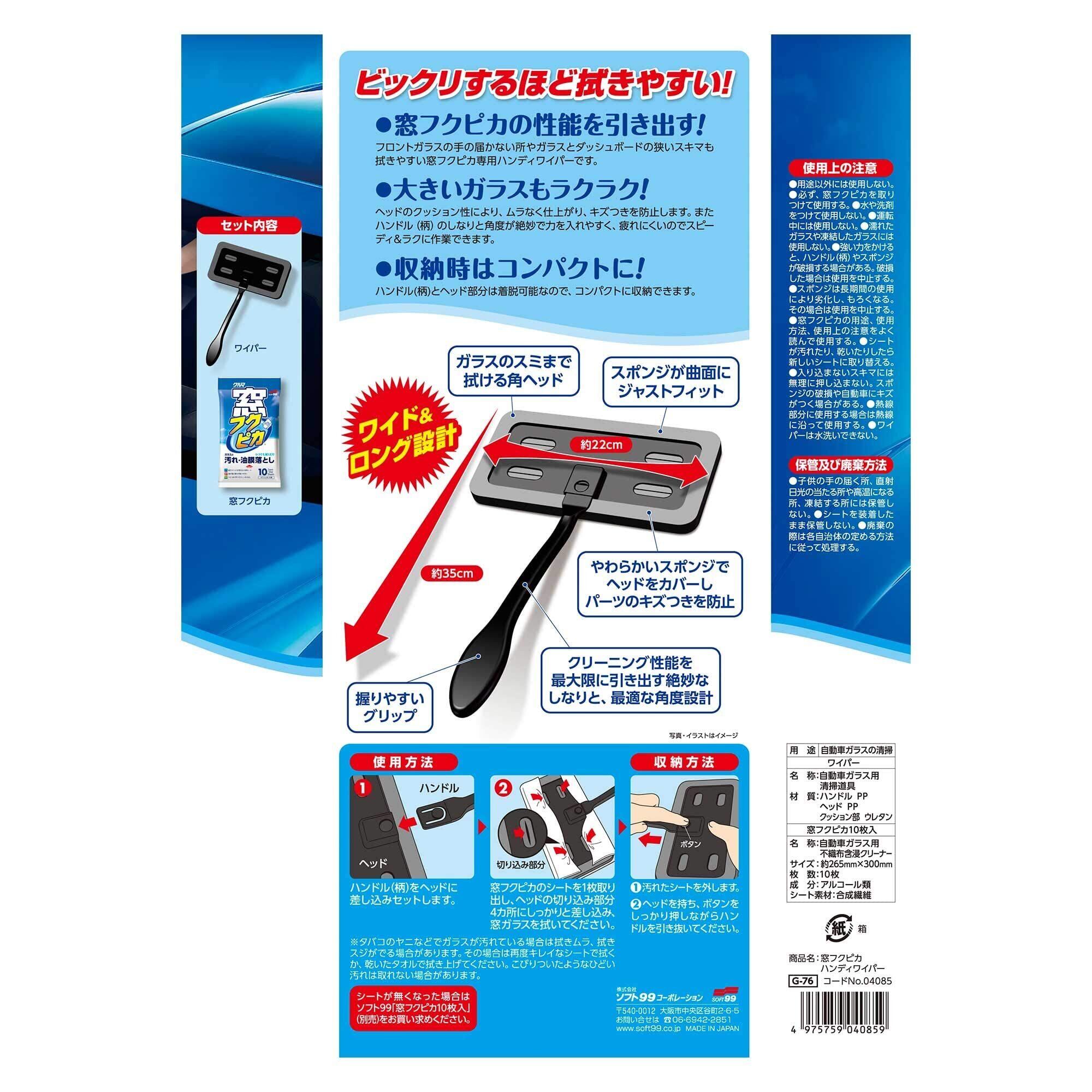 ソフト99(SOFT99) フクピカ ガラスクリーナー 窓フクピカハンディワイパー 自動車ガラスの清掃 04085 35x22x7cm