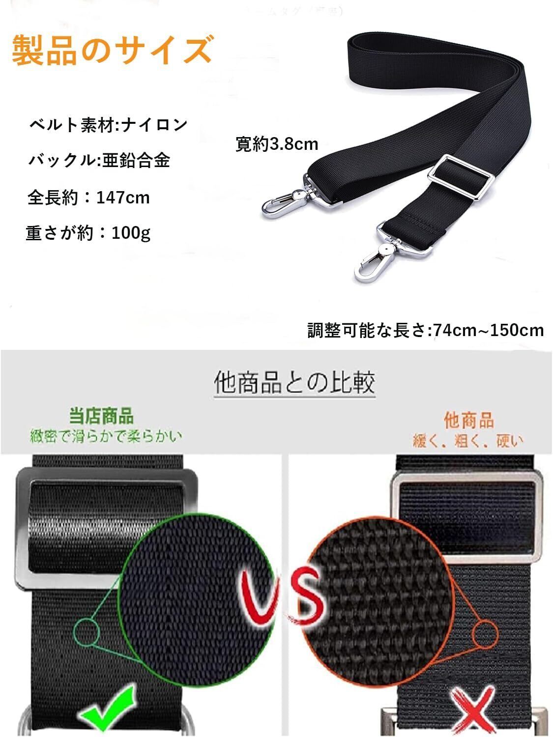 [Marcea] ショルダーストラップ ショルダーベルト140cm 肩掛けベルト 単品 水筒 ストラップ ショルダーバッグ 紐 太め バッグのヒモのみ メッセンジャーバッグ、PC バッグ、カメラケース、ビジネスバッグ、スポーツバッグ、ツールバッグ など