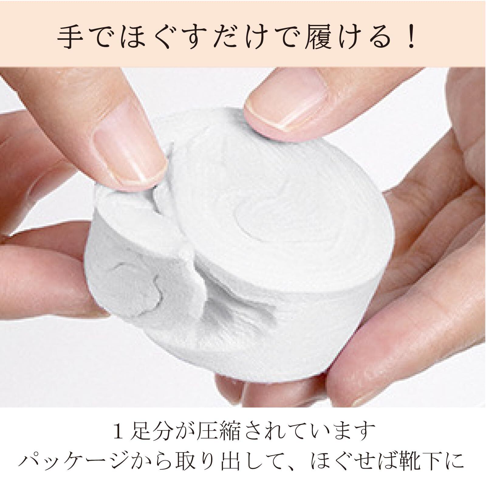 【簡単に使用可能】靴下は圧縮された状態で固まっており、開封後に手でほぐすだけで使用可能です。特別な準備やコツは不要で、誰でも簡単に履けます