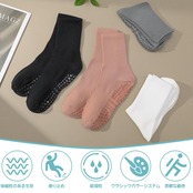 【抜群の滑り止め効果を体感!】独自設計の滑り止め付きのソックスは、マットや床を選ばず安定感を提供します。ポーズをとる際に、しっかりとしたグリップ感で自信を持って取り組むことができます。グループレッスンや自宅でのトレーニングも安心です。