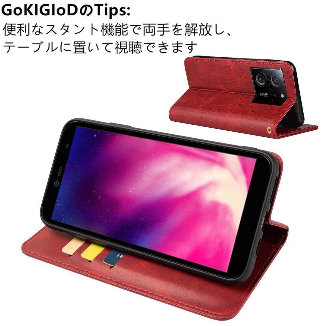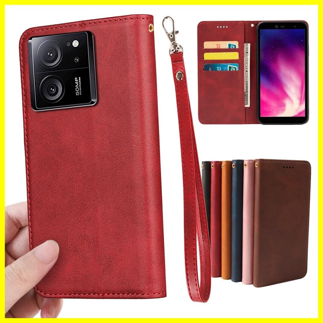 GOKIGIOD 適用 Xiaomi 13T XIG04 / 13T Pro 通用 ケース 手帳型 ストラップ 同梱 シャオミ 13T プロ カバー 手帳 Xiaomi13TPro シャオミ13T スマホケース Xiaomi13Tケース 財布型 内蔵マグネット 弱磁 カード収納 ストラップホール スタンド機能 耐衝撃 レトロ レッド