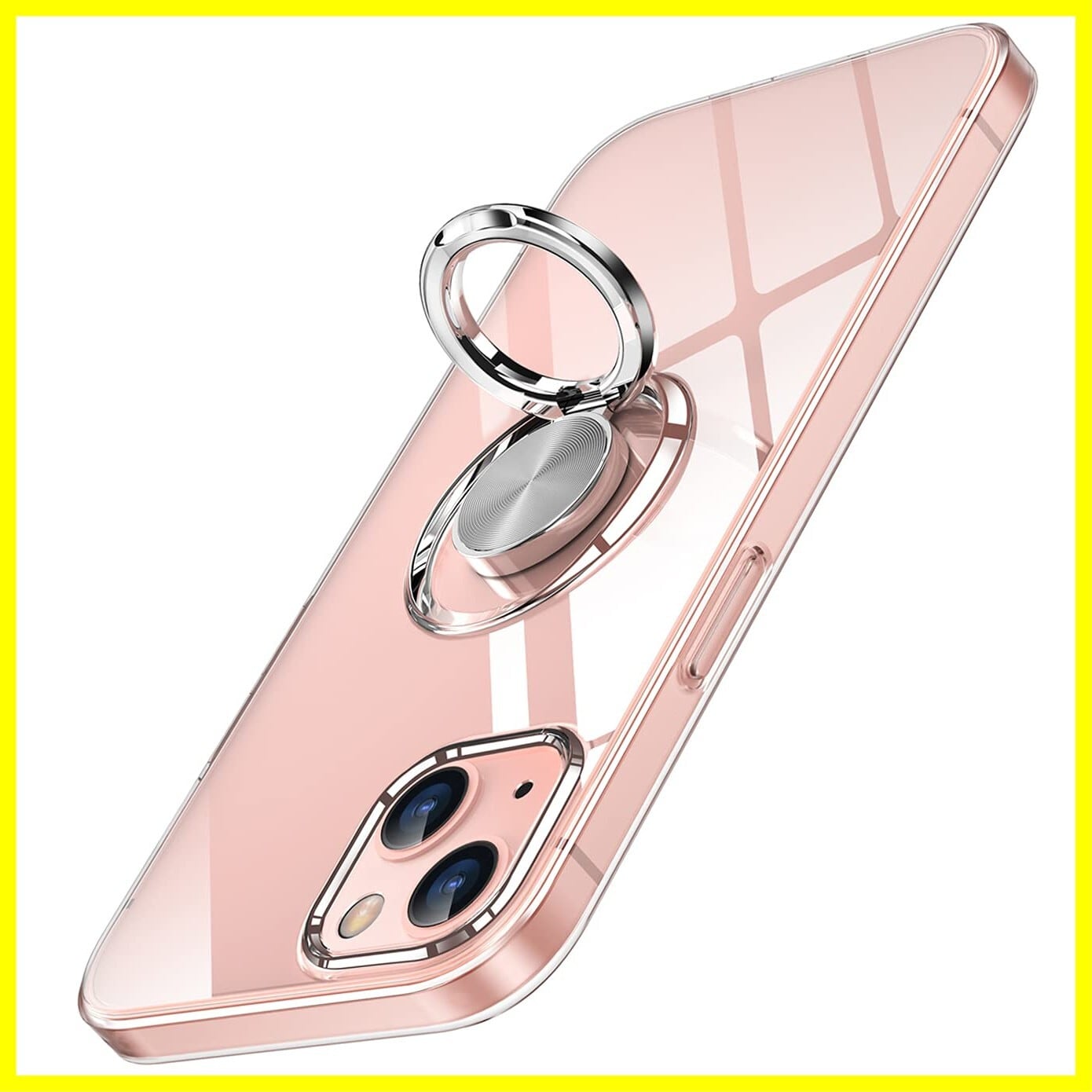 OURJOY iPhone13 mini 用 ケース リング付き スマホケース アイフォン 13ミニ 用 クリアケース 透明 TPU ストラップホール付き 耐衝撃 スタンド機能 車載ホルダー対応 一体型 アイホン13mini 携帯ケース カバー・クリア
