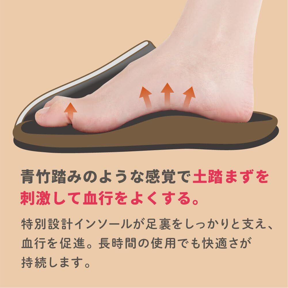 特別設計の隆起インソールが足裏をしっかりと支え、血行を促進。長時間の使用でも快適さが持続します。