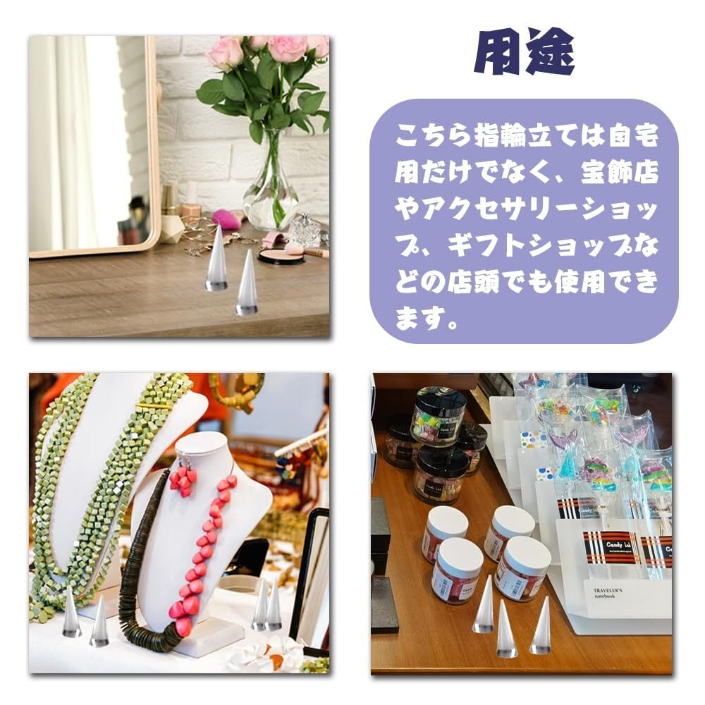 △ 機能性:どんなサイズの指輪でも収納できます、円錐形のスタンドなので、指輪のサイズやデザインを選ぶことなくディスプレイしておけます。指輪を外したら、尖がった部分にすっと掛けておくだけ。簡単に指輪を整理することが可能です。指輪を選ぶ際にも見やすくて便利です。