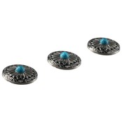 【多彩な用途で楽しめるターコイズボタン!】「[ターコイズ 30mm ラウンドコンチョ]」は、ウォレットやバッグ、ベルト、サドル、帽子、洋服など、幅広いアイテムに合わせてお使いいただけるおしゃれなボタンです。ヴィンテージブルーの美しいターコイズカラーが、どのようなスタイルにもアクセントを加え、あなたのDIYプロジェクトを引き立てます。
