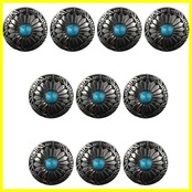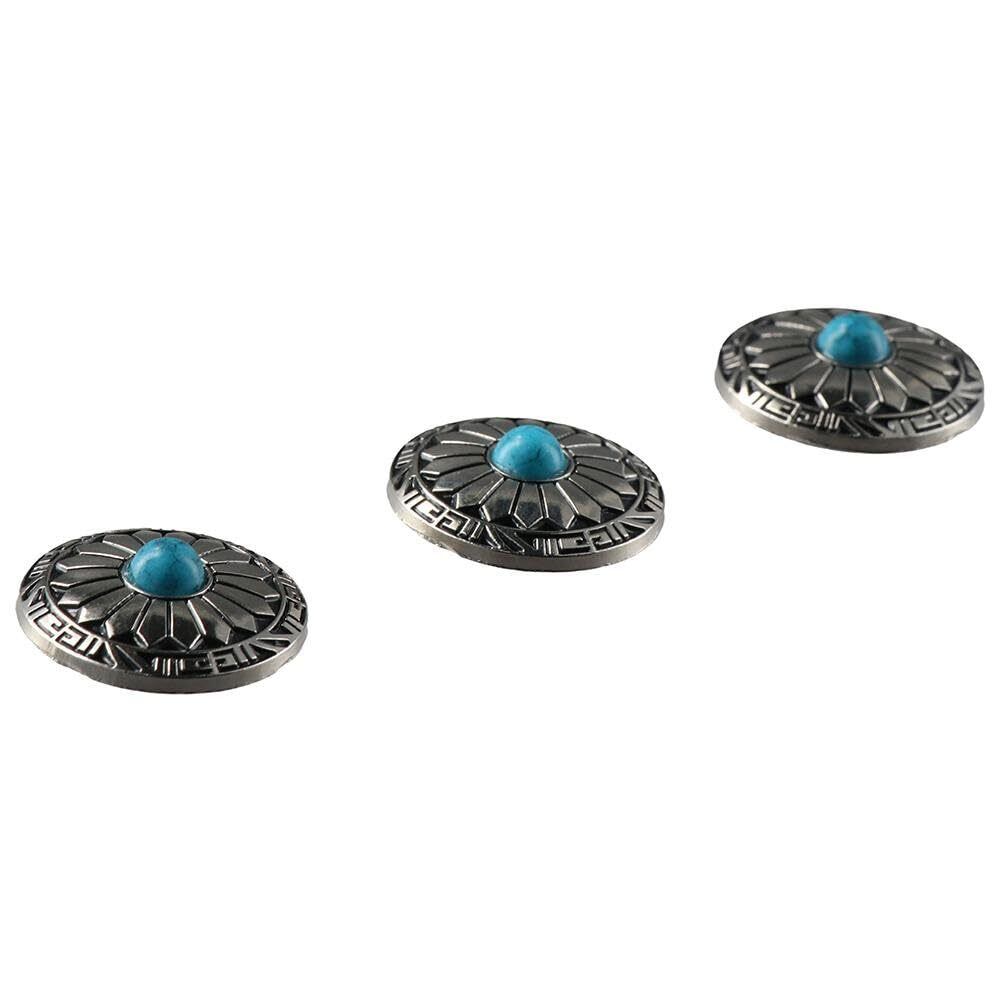 [ターコイズ] 10個 30mm ターコイズ ラウンドコンチョ シルバーメタルスクリューバックボタン メタルサンフラワーボタン ヴィンテージブルーバーコイズボタン DIYウォレット、バッグ、ベルト、サドル、帽子、洋服用