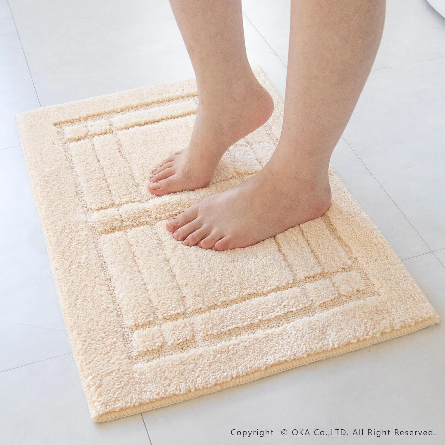 オカ(OKA) クリュム バスマット 約45cm×65cm アイボリー (足ふきマット 洗える 滑り止め)