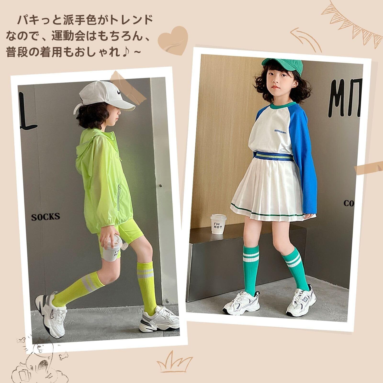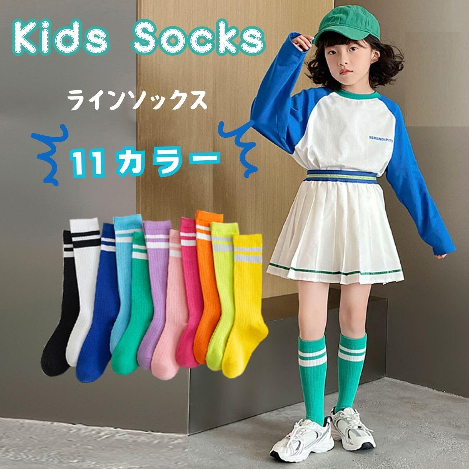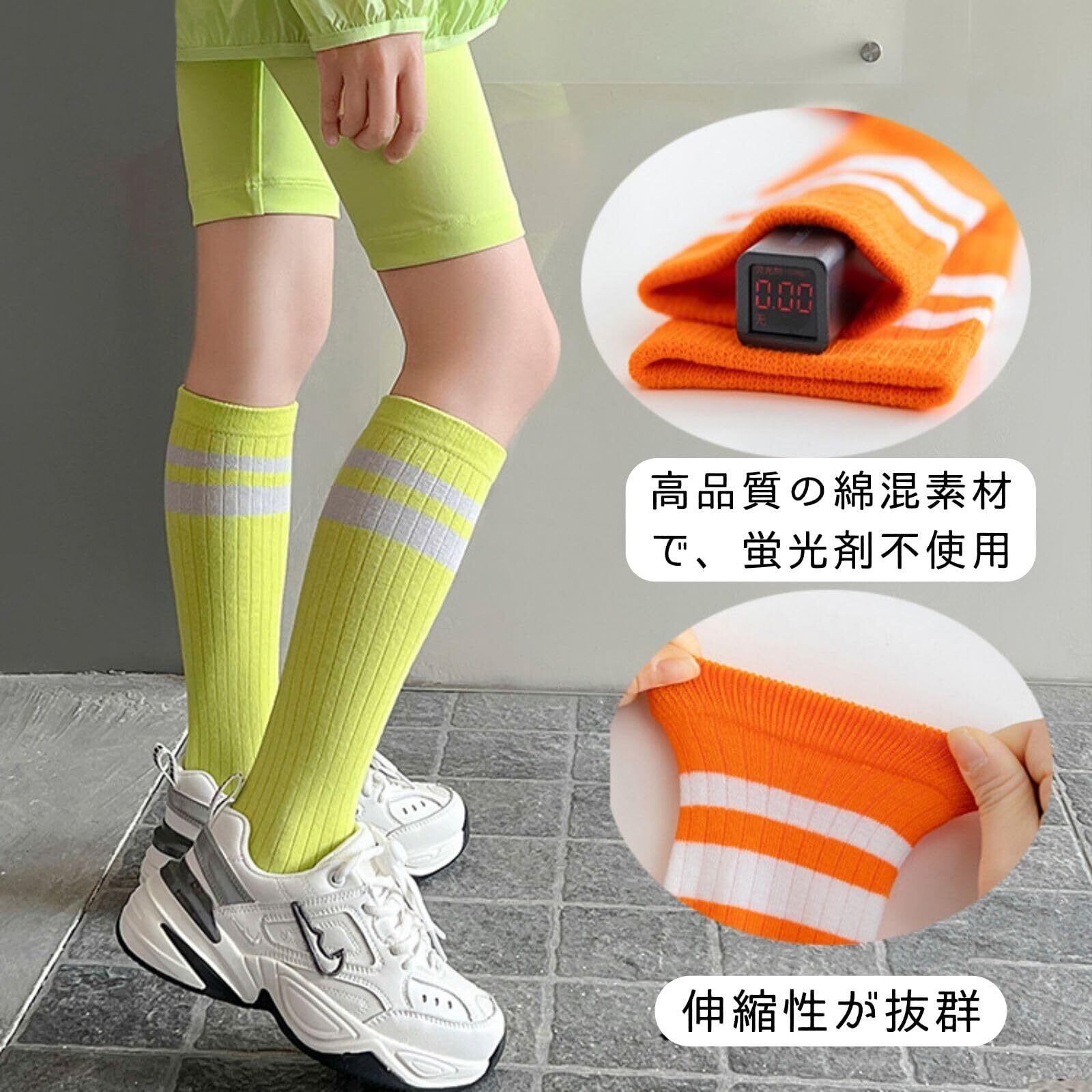[konamiya] 選べる11色 子供 靴下 キッズ ハイソックス ラインソックス カラフル おしゃ ボーダーソックス ニーハイ チーム衣装 運動会 イベント用 目立つ 蛍光色