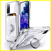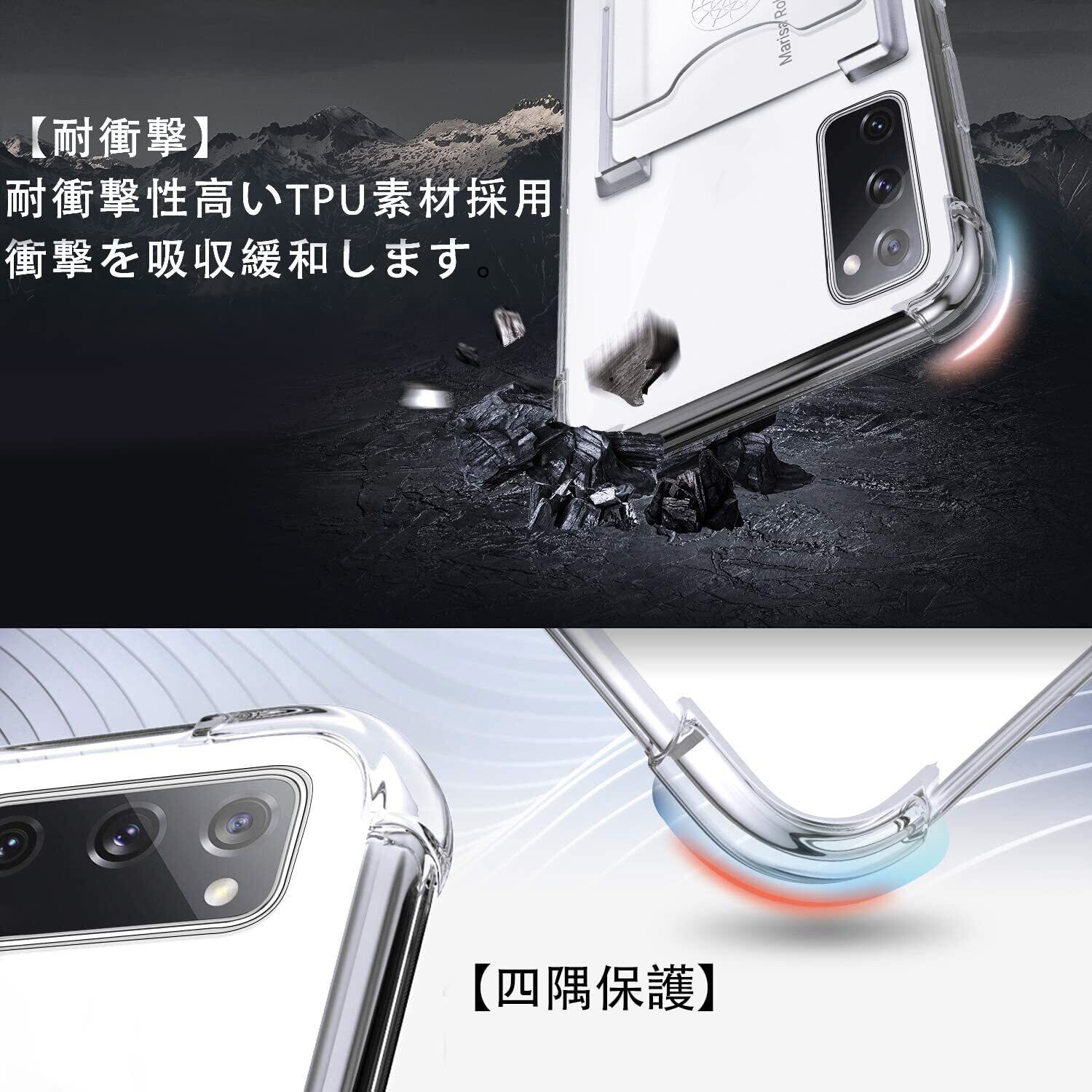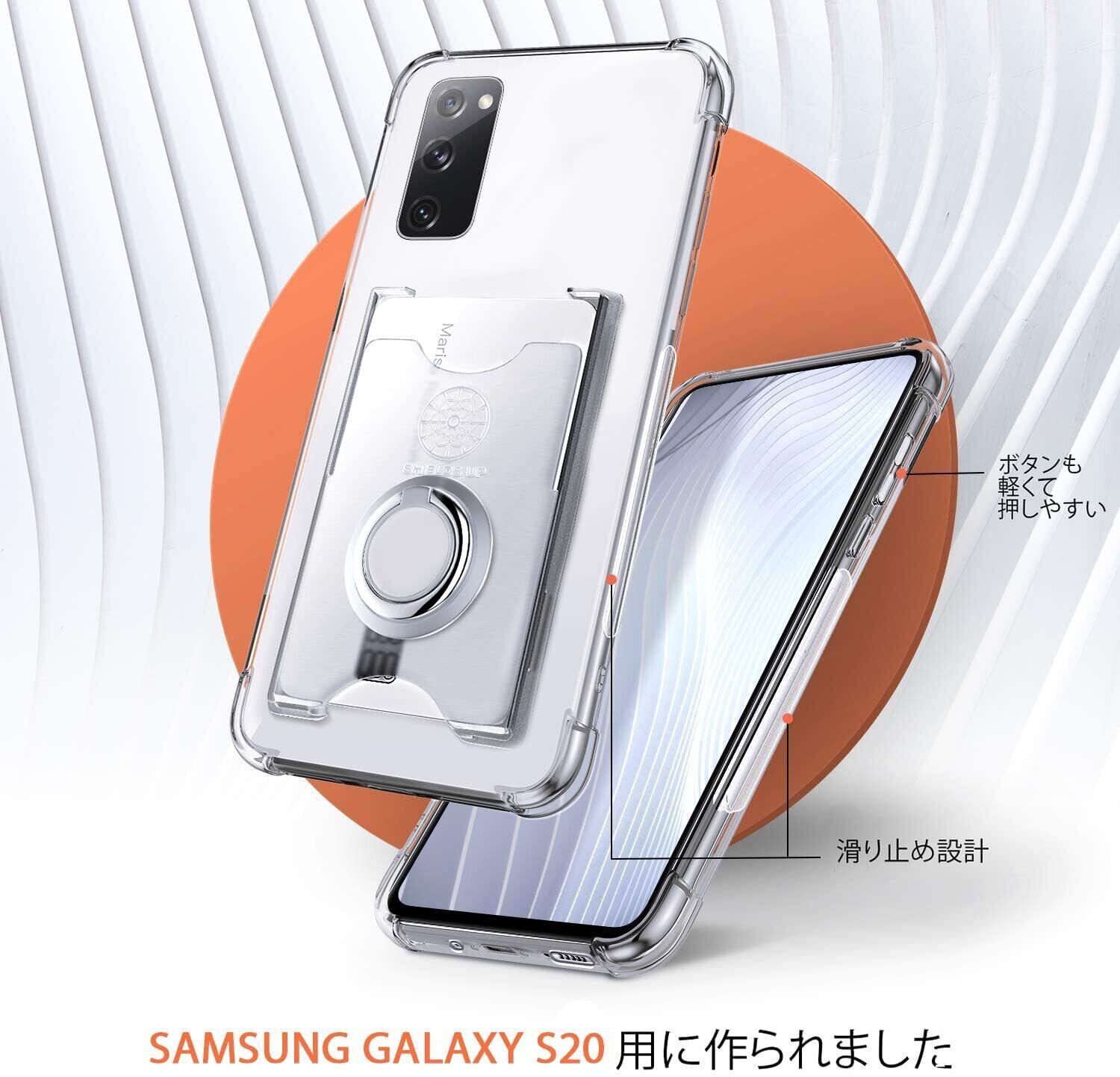 SHIELDS UP Galaxy S20 用 ケース SC-51A SCG01 ケース カード収納 背面ポケット リング付き スタンド機能 耐衝撃 透明 TPU カバー ギャラクシーS20 スマホケース - クリア