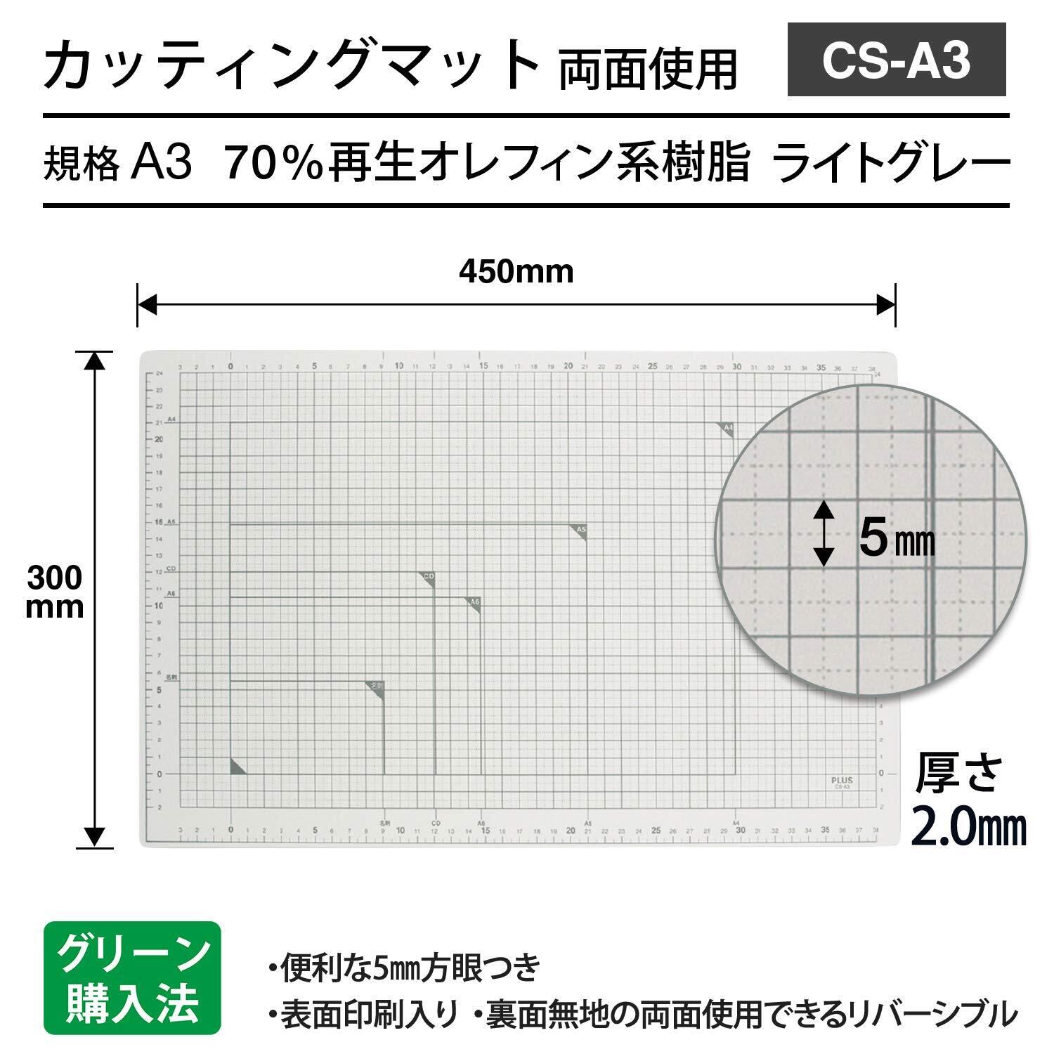 プラス カッターマット カッティングマット 両面 A3 300×450mm ライトグレー CS-A3 48-583